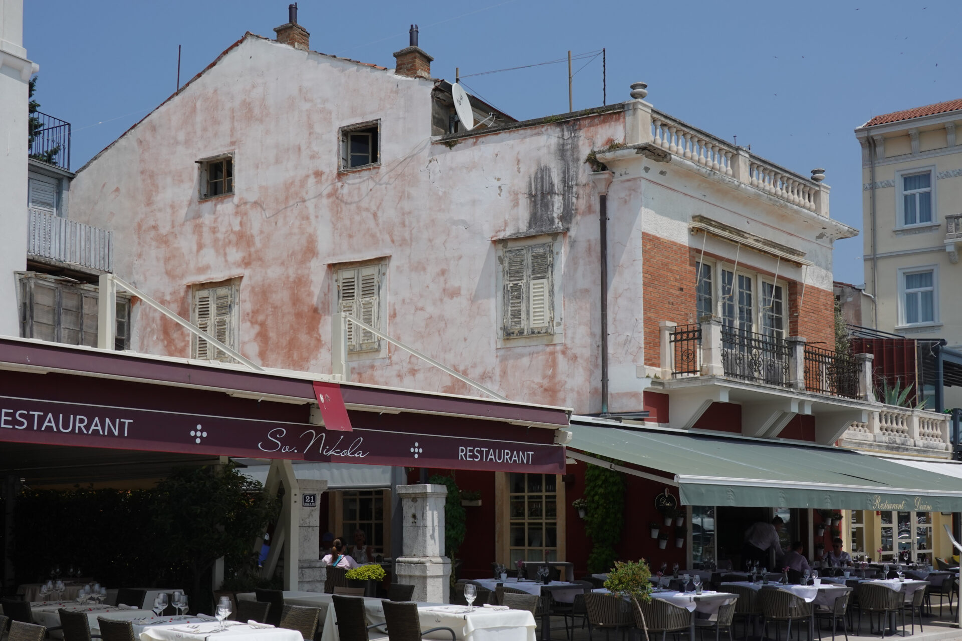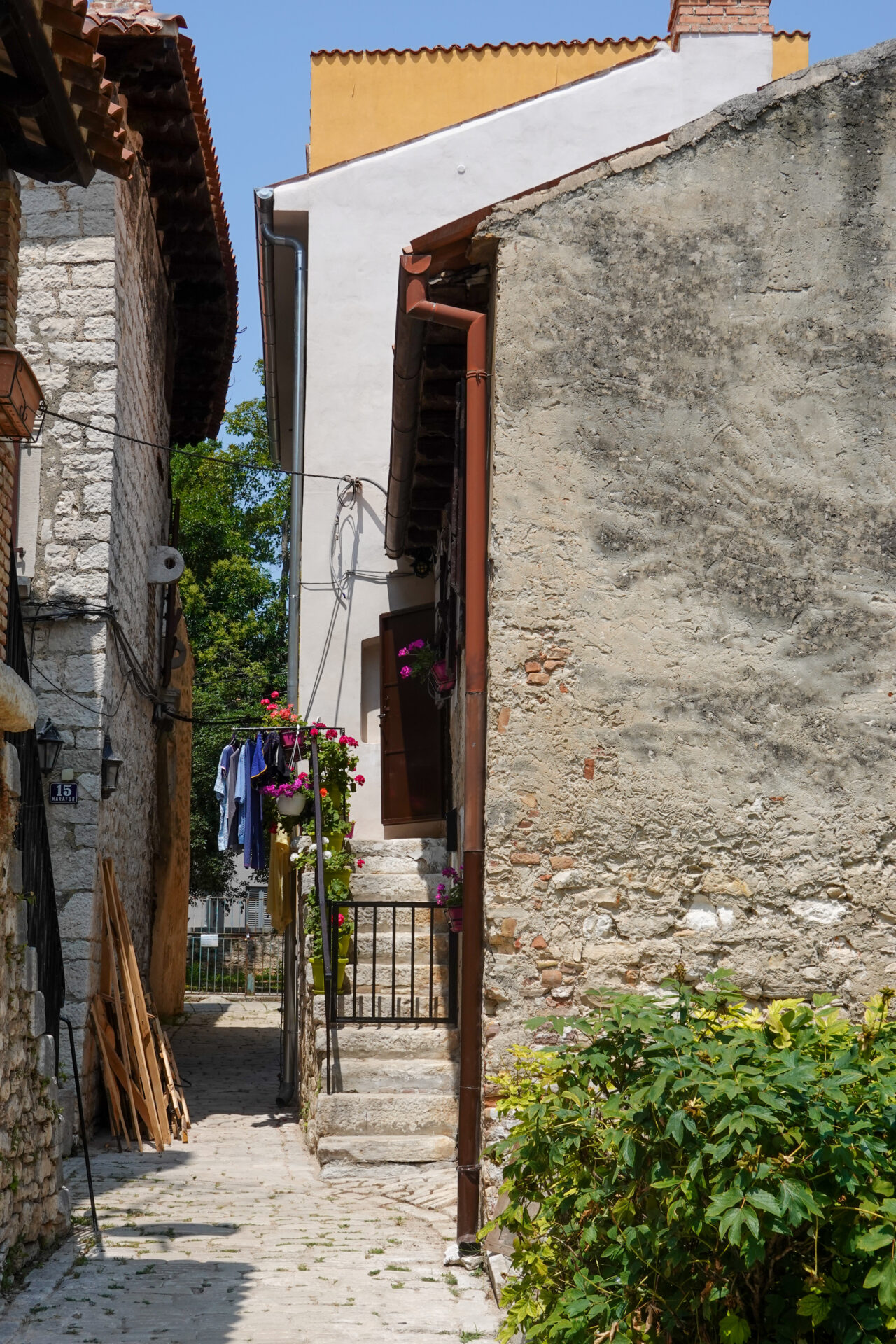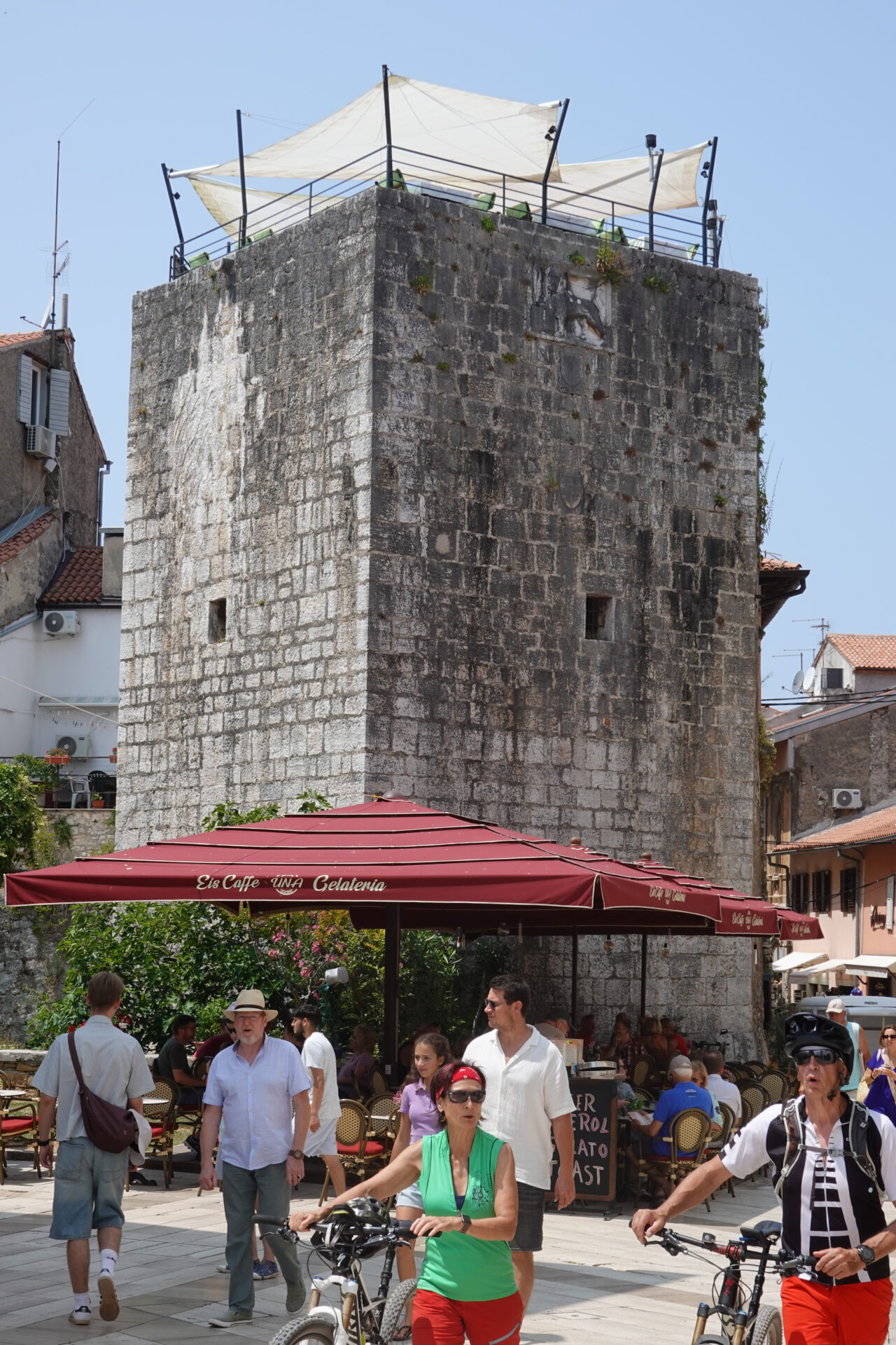 Wir schlendern weiter durch die Altstadt und beschließen zum Bed&Breakfast zu fahren, um das Rad zu reparieren. Und da kam Alex (ein lieber Ex-Kollege von Omninet): zusammen mit seiner sympathischen Ehefrau Martina. Zufällig ist er auch gerade in Poreč, das habe ich zwar zuvor per WhatsApp erfahren, aber sie schlendern genau an unserem Café vorbei. Zufälle gibt’s, das muss natürlich angestoßen werden und so plaudern wir gleich ein paar Stunden. Aber irgendwann sollte wir das Rad reparieren und Martina und Alex haben Hunger. Also trennen wir uns und wir wandern wieder Richtung Unterkunft.