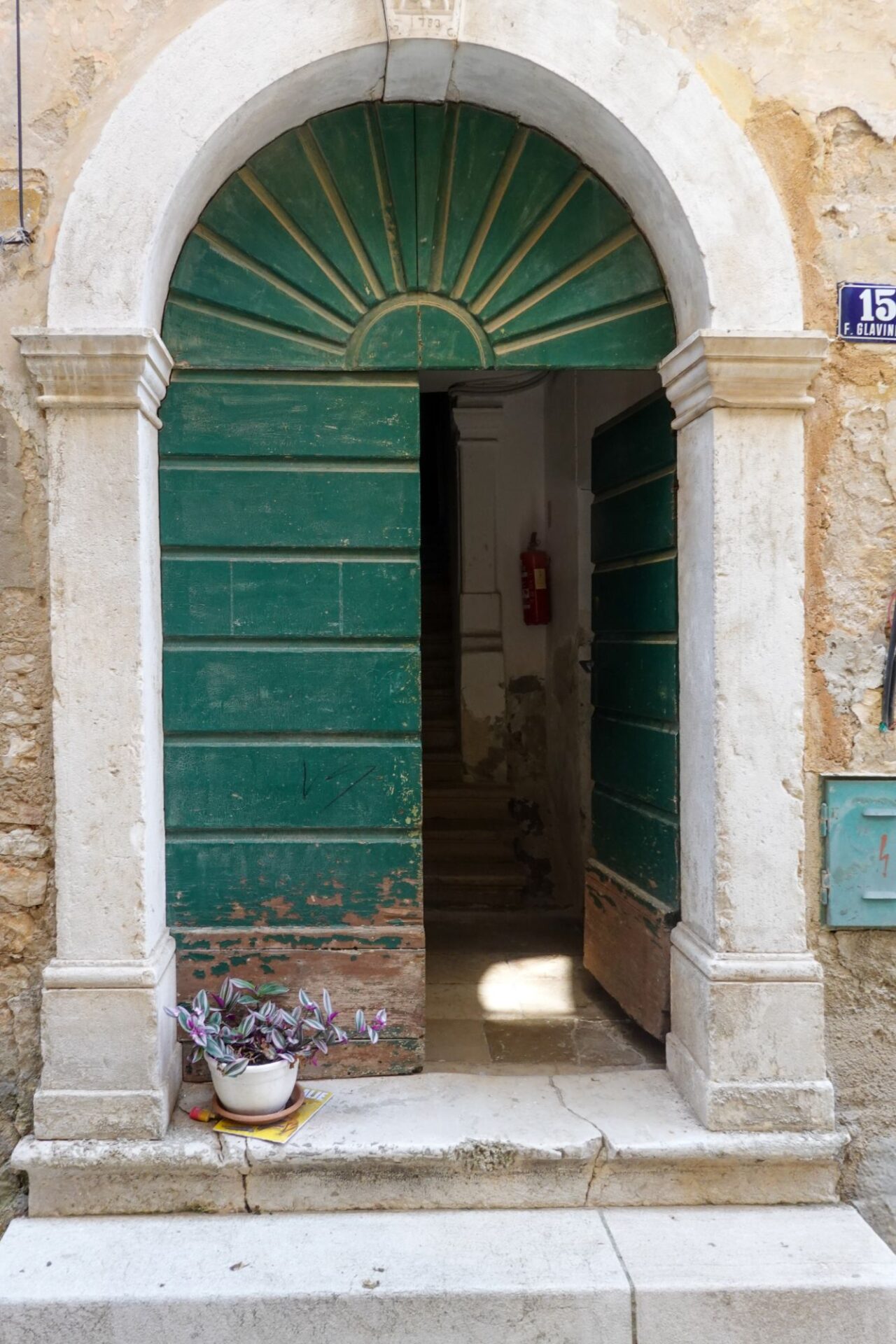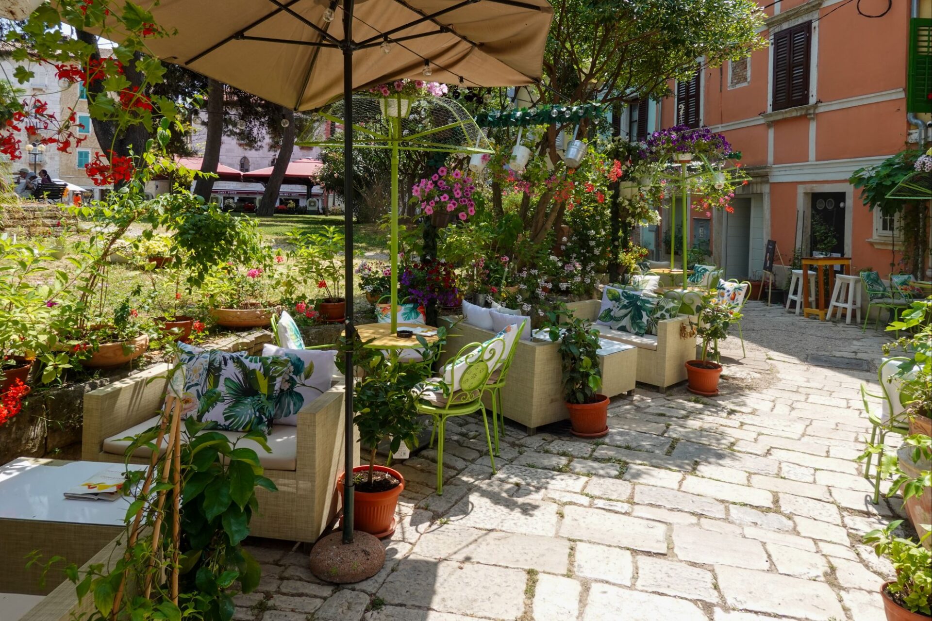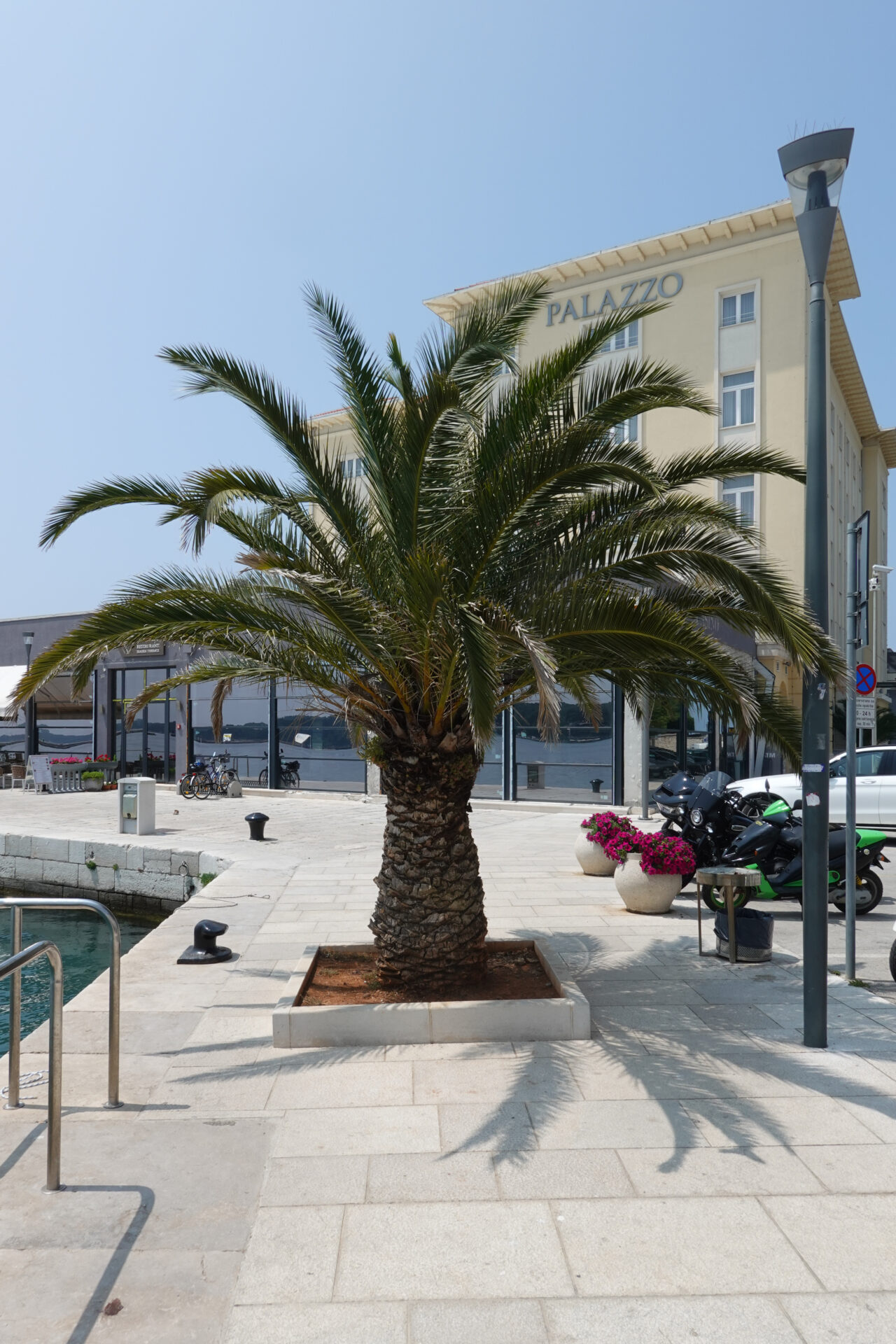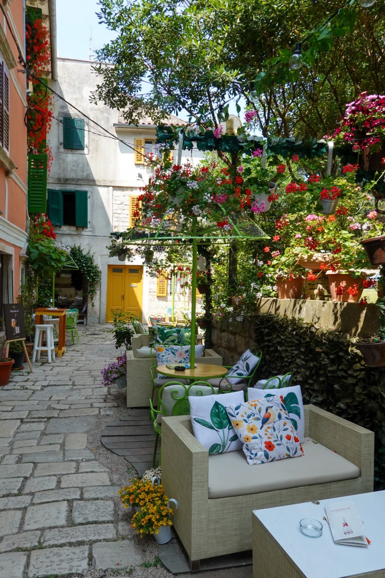 Wir schlendern weiter durch die Altstadt und beschließen zum Bed&Breakfast zu fahren, um das Rad zu reparieren. Und da kam Alex (ein lieber Ex-Kollege von Omninet): zusammen mit seiner sympathischen Ehefrau Martina. Zufällig ist er auch gerade in Poreč, das habe ich zwar zuvor per WhatsApp erfahren, aber sie schlendern genau an unserem Café vorbei. Zufälle gibt’s, das muss natürlich angestoßen werden und so plaudern wir gleich ein paar Stunden. Aber irgendwann sollte wir das Rad reparieren und Martina und Alex haben Hunger. Also trennen wir uns und wir wandern wieder Richtung Unterkunft.