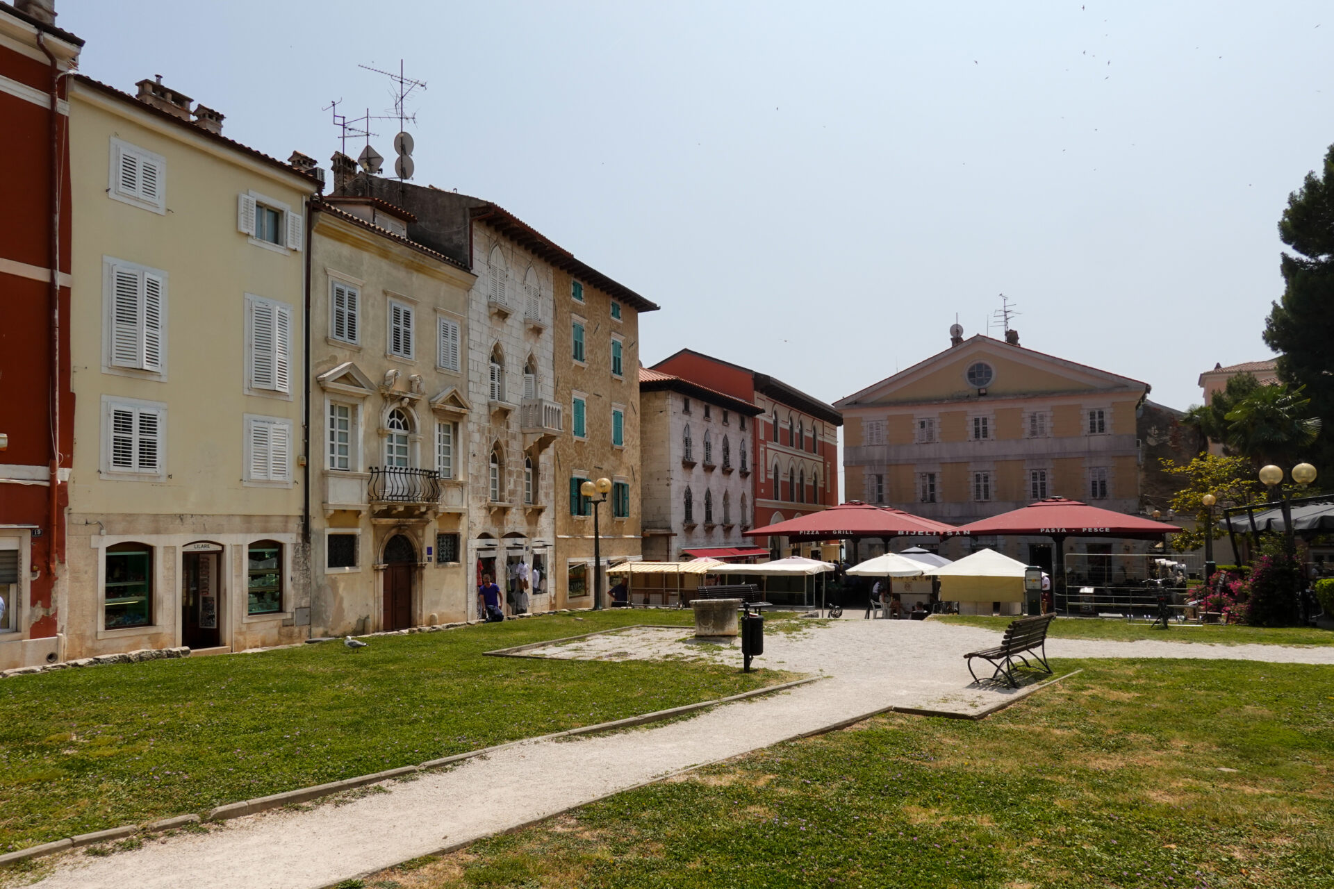 2 Tage bleiben wir in Poreč, ohne großen Plan, einfach rasten und treiben lassen. Am ersten Tag gehen wir zu Fuß die 3km ins Zentrum, schon auf dem Weg hin, kommen uns die ersten Keiler entgegen, um uns ihre Bootstouren anzudrehen. Aber auf das haben wir keine Lust, unser Plan ein paar Dinge zu besorgen, wie unseren obligatorischen Kühlschrank Magneten. Am Ende landen wir in einem typisch kroatischen Gewandgeschäft (NKD :-)) um etwas Leichtes zu kaufen.