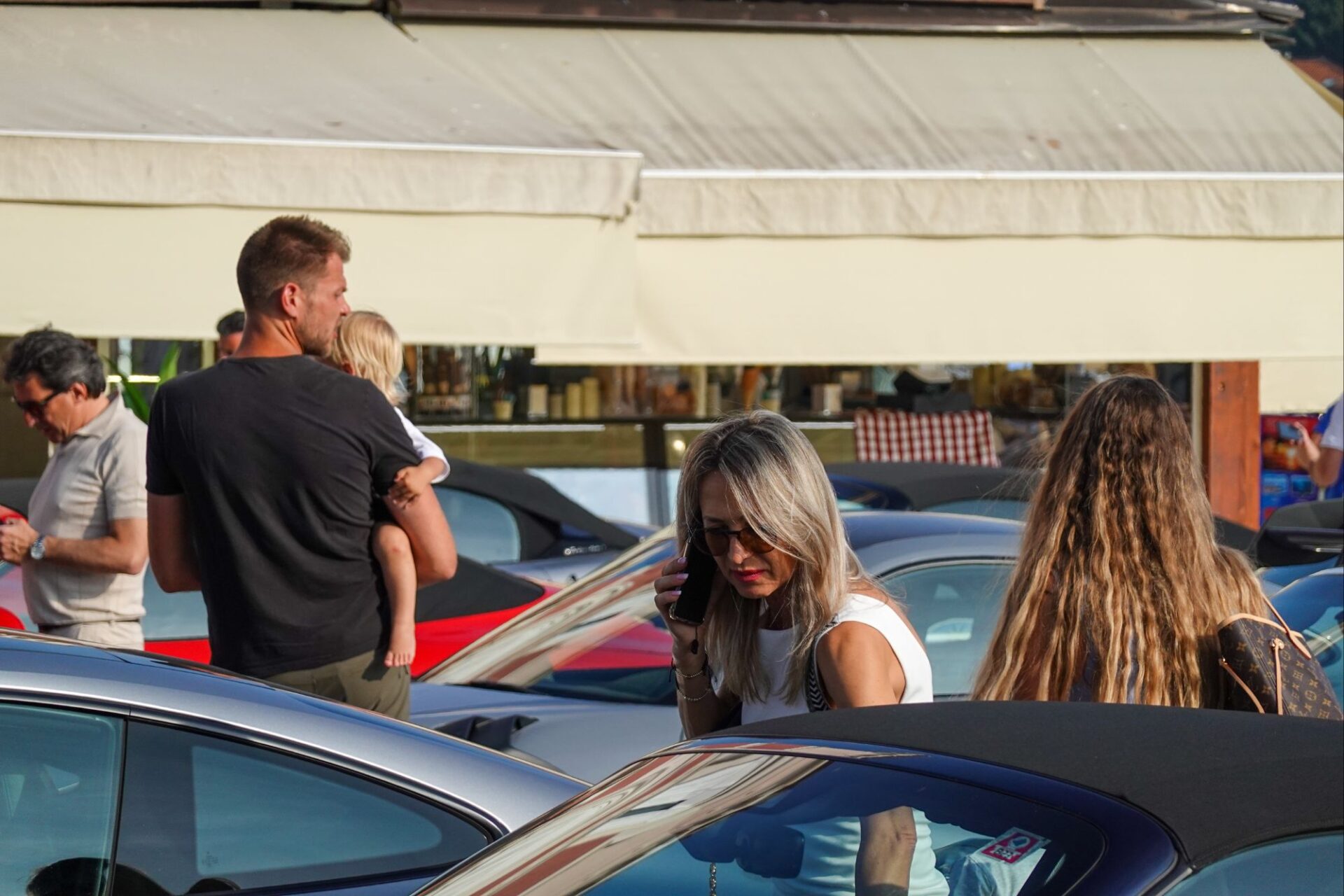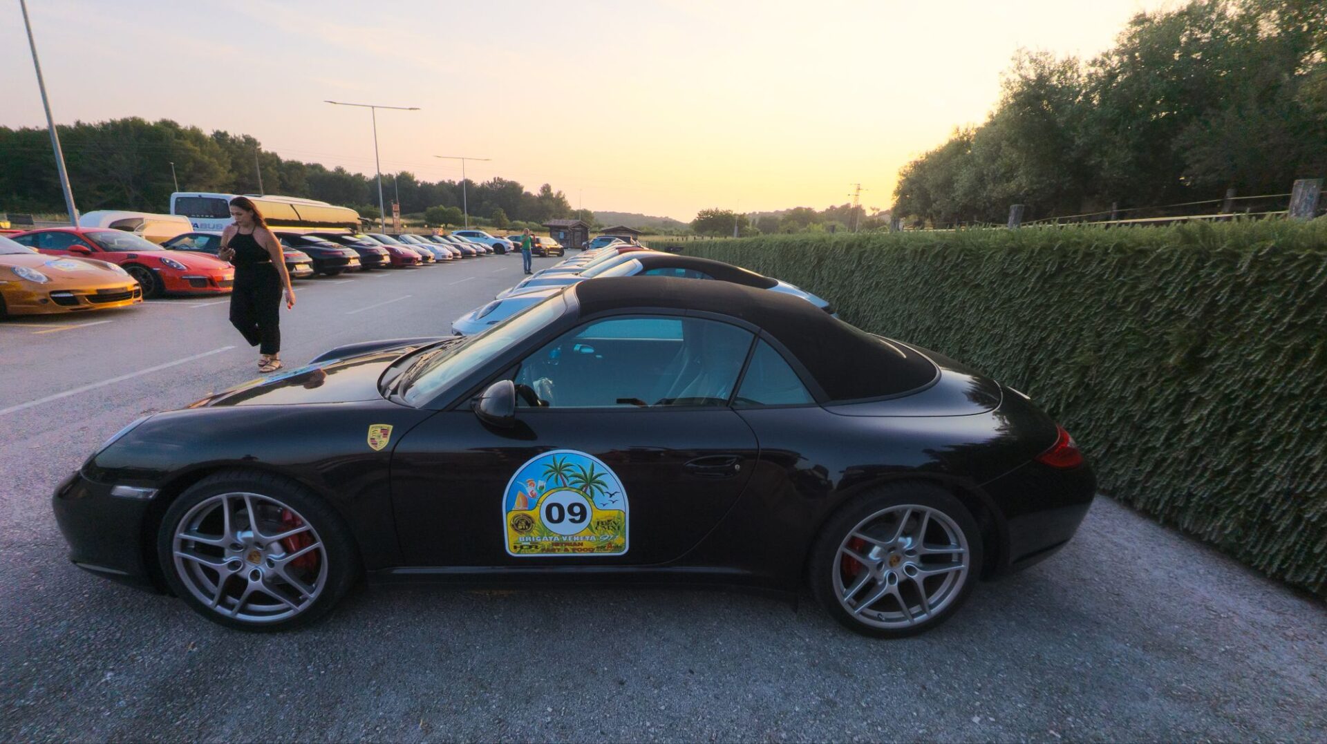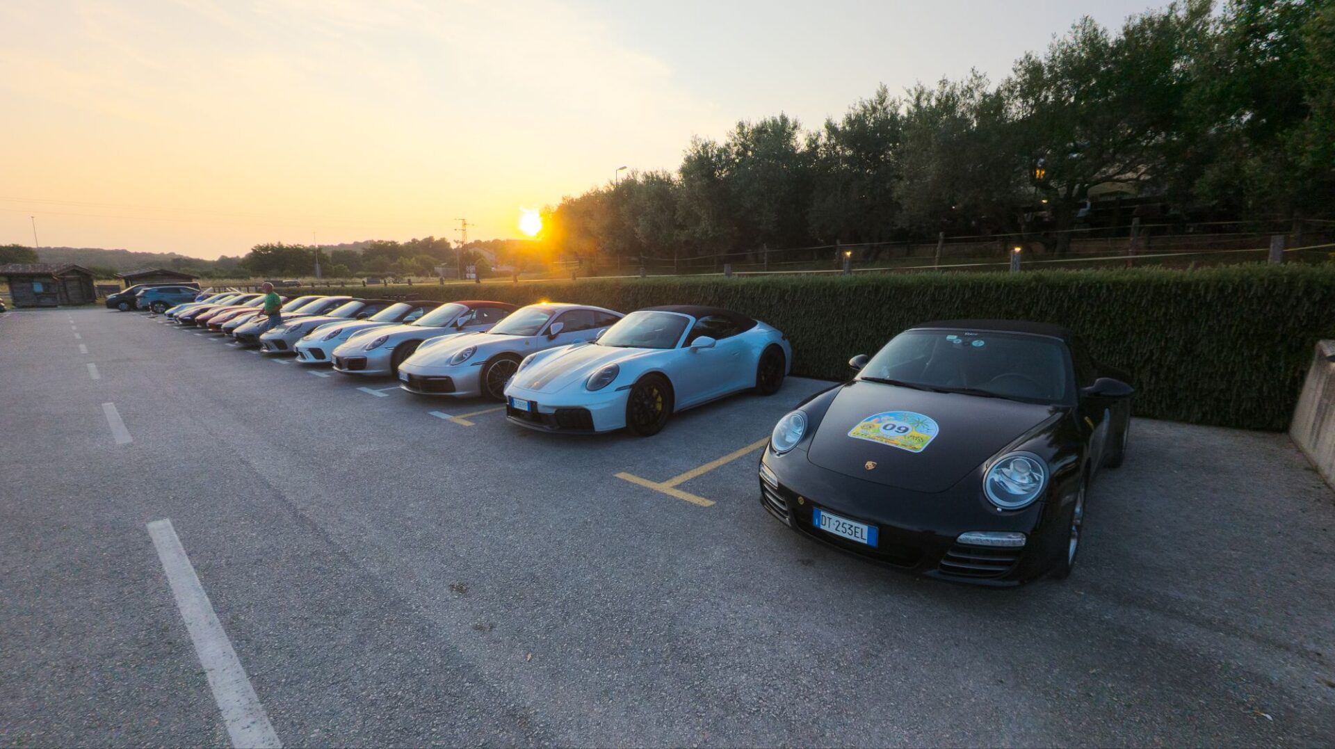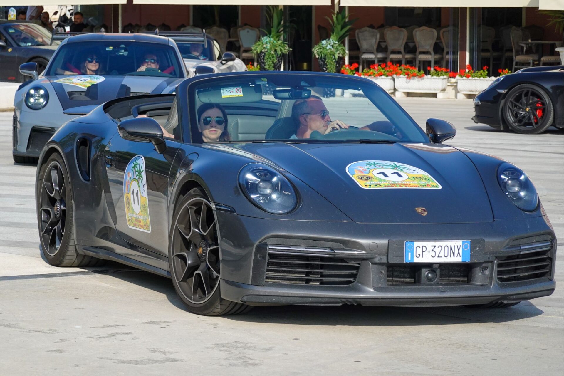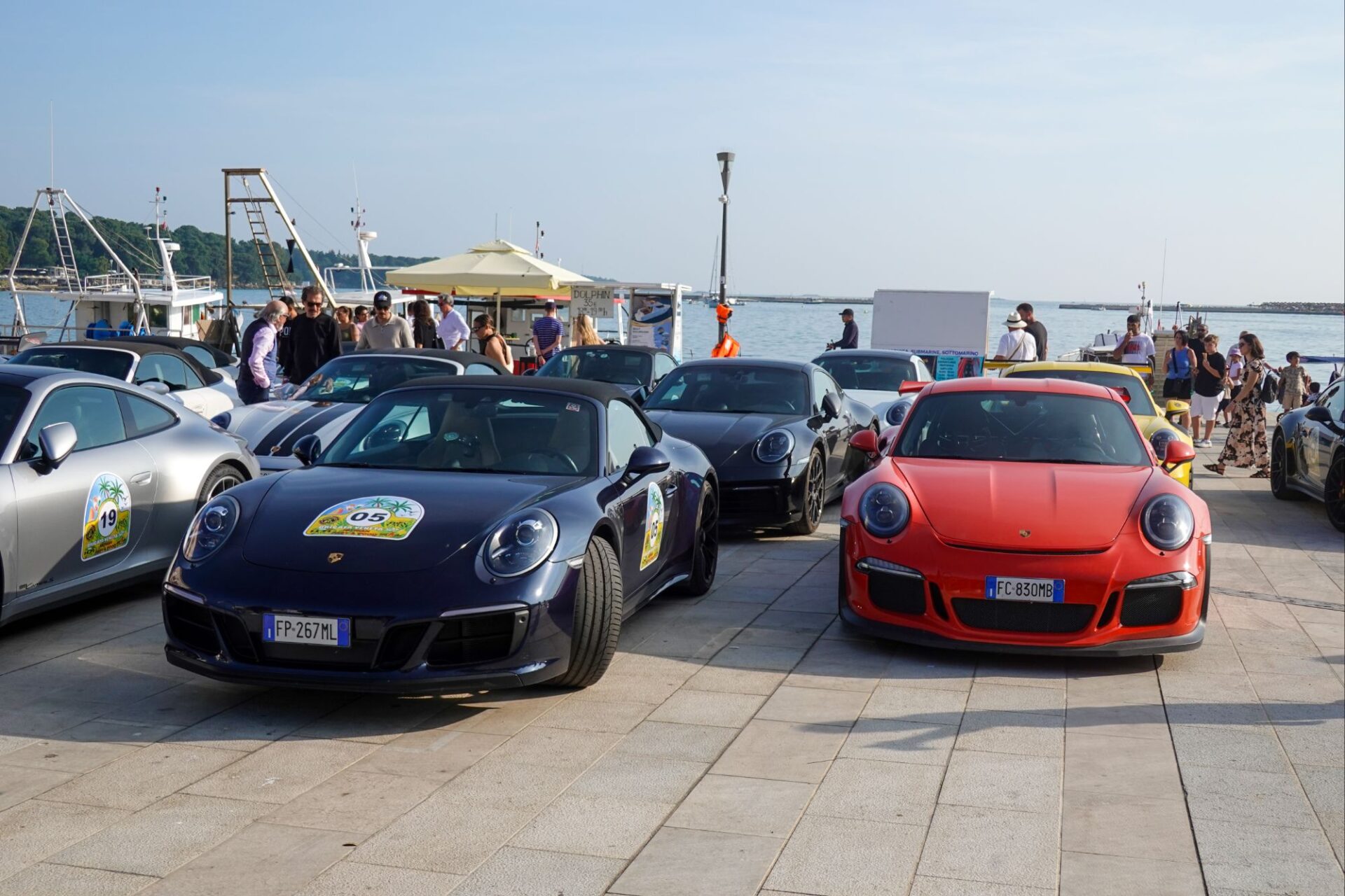 Am Hafen hört man auf einmal ein Donnergrollen, 30 oder mehr Porsches rollen ein.