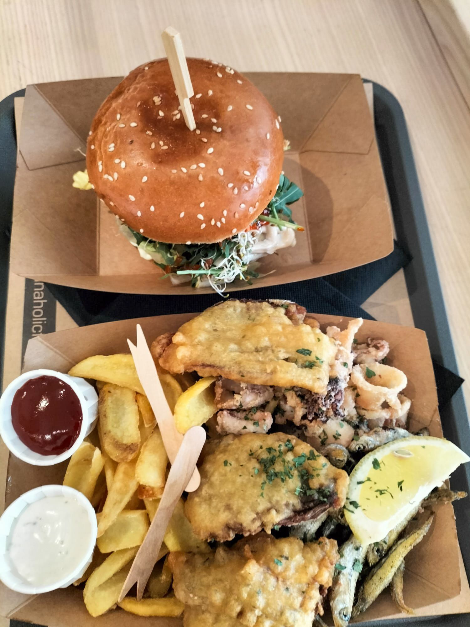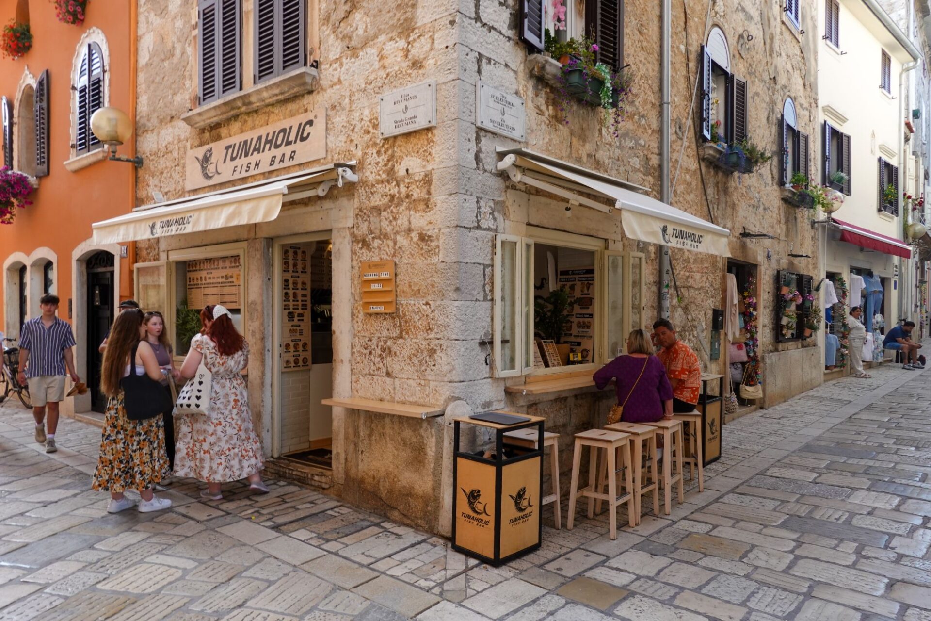 Nach einer Dusche in der Unterkunft geht es zurück nach Poreč. Hier essen wir exzellenten Fastfood in der ‘Tunaholic Fish Bar’ ein wirklich ausgezeichneter Sharkburger und Fried Mixed Rivetta (Sardinen, Calamari, Filet vom Stint im Backteig und Pommes) ebenfalls ausgezeichnet, eine Empfehlung von uns, werden wir sicher nochmals besuchen. Gut, frisch und Preis/Leistung passt – so stelle ich mir Street bzw. Fast Food vor.