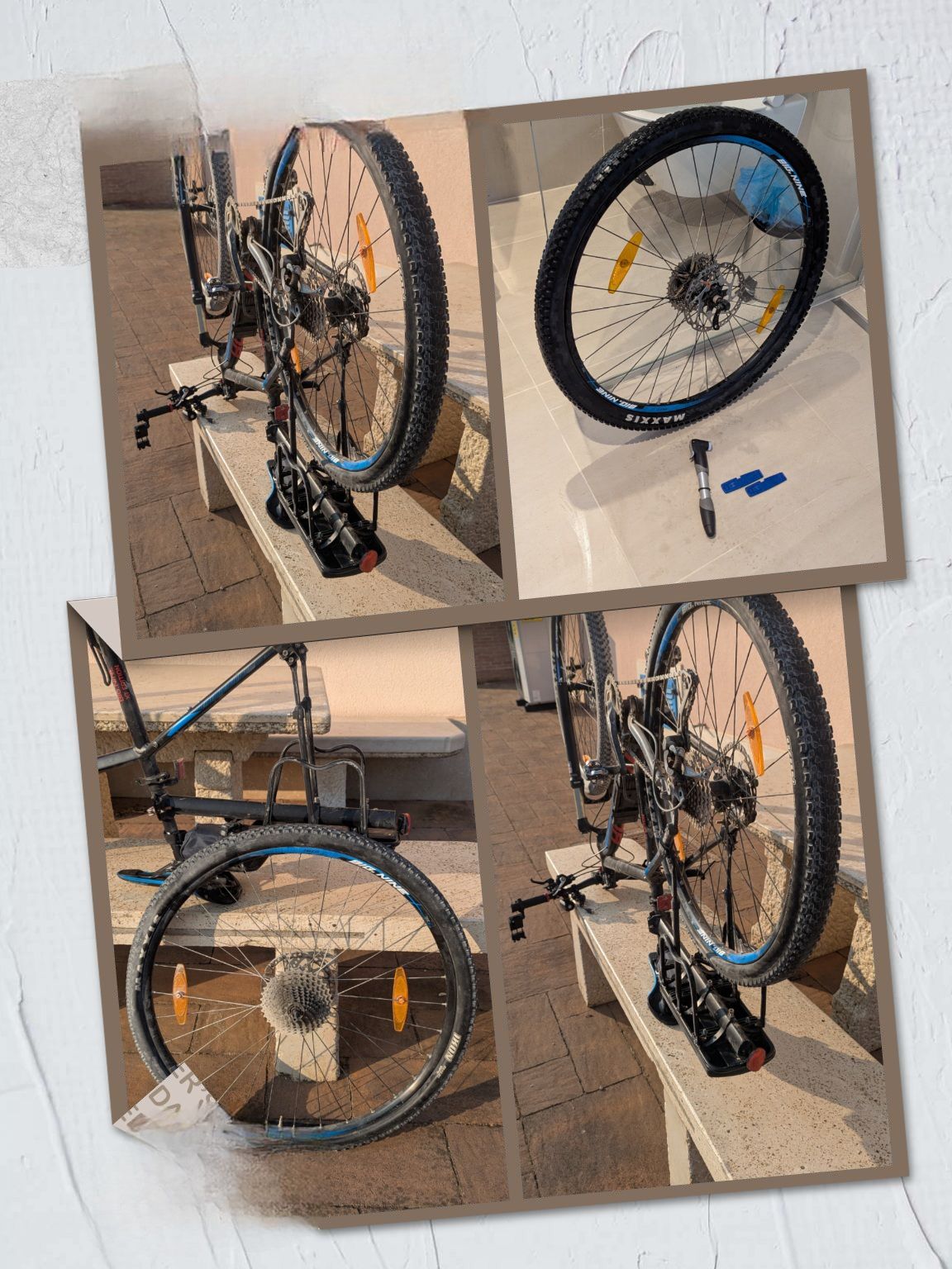 Am Freitag versuche ich gleich in der Früh, bevor es zu warm wird , den Schlauch zu reparieren. Nachdem ich alles gereinigt habe, habe ich gemerkt dass das Ventil nicht richtig am Schlauch verklebt ist, auf jeden Fall entweicht die Luft am Rand des Flecken, wo das Ventil ist. Super, nagelneuer Schlauch und kaputt.Aber ich hatte einen zweiten Schlauch und der passt. Rad reinigen, Reifen richtig aufpumpen und ab nach Poreč shoppen. Zuerst wieder Schlauch nachkaufen, wir haben ja noch die Fahrt nach Triest vor uns. Danach Magneten kaufen und Brigitte findet in einer Boutique eine schöne, luftige Sommerkombi.