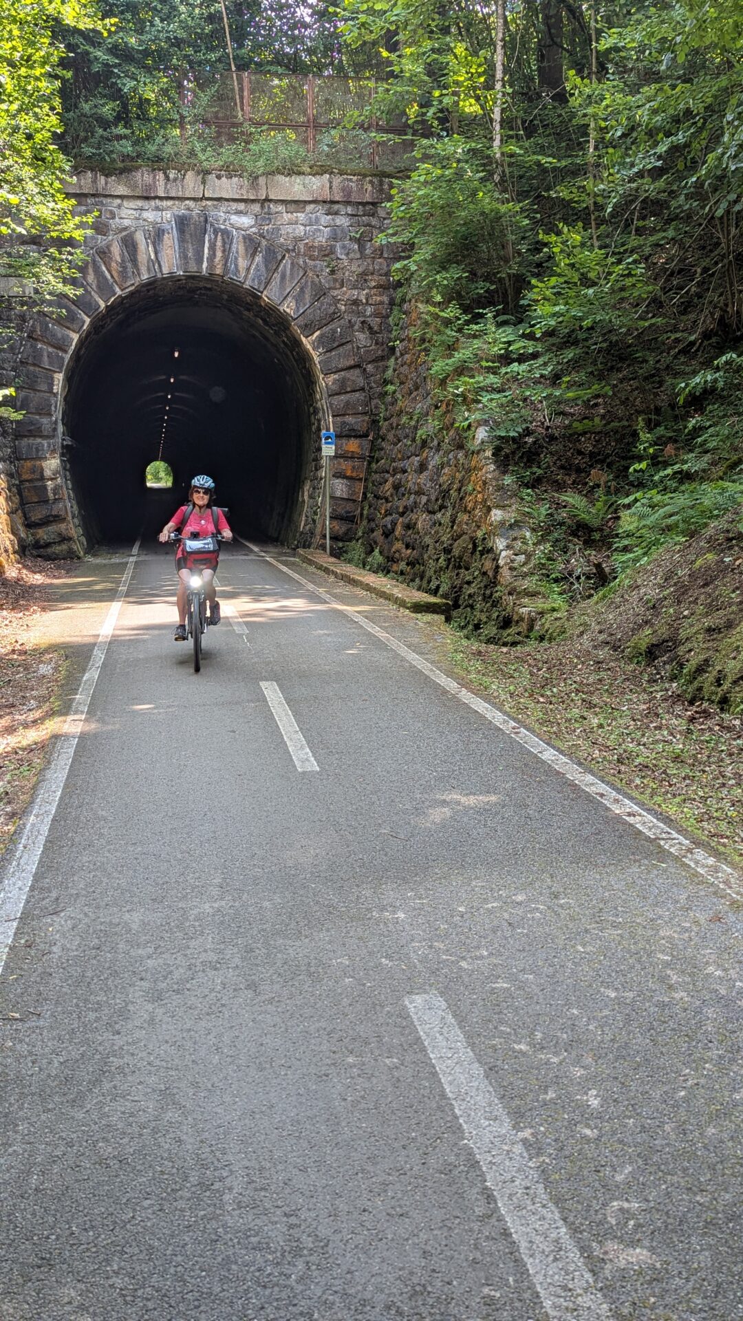 Das Besondere an diesem Abschnitt sind die ehemaligen Eisenbahntunnel und die hohen Viadukte. Durch die Tunnel zu radeln, ist ein echtes Highlight – manchmal ein bisschen kühl und dunkel, aber immer mit dem Gefühl, ein kleines Abenteuer zu erleben. Und wenn man dann aus einem Tunnel herausschießt und der Blick sich über die weiten Täler öffnet, das ist einfach atemberaubend! Man fühlt sich wie ein Entdecker auf den Spuren der Eisenbahn. Diese alten Bauwerke sind nicht nur funktional, sondern auch beeindruckende Zeugnisse der Ingenieurskunst vergangener Zeiten.