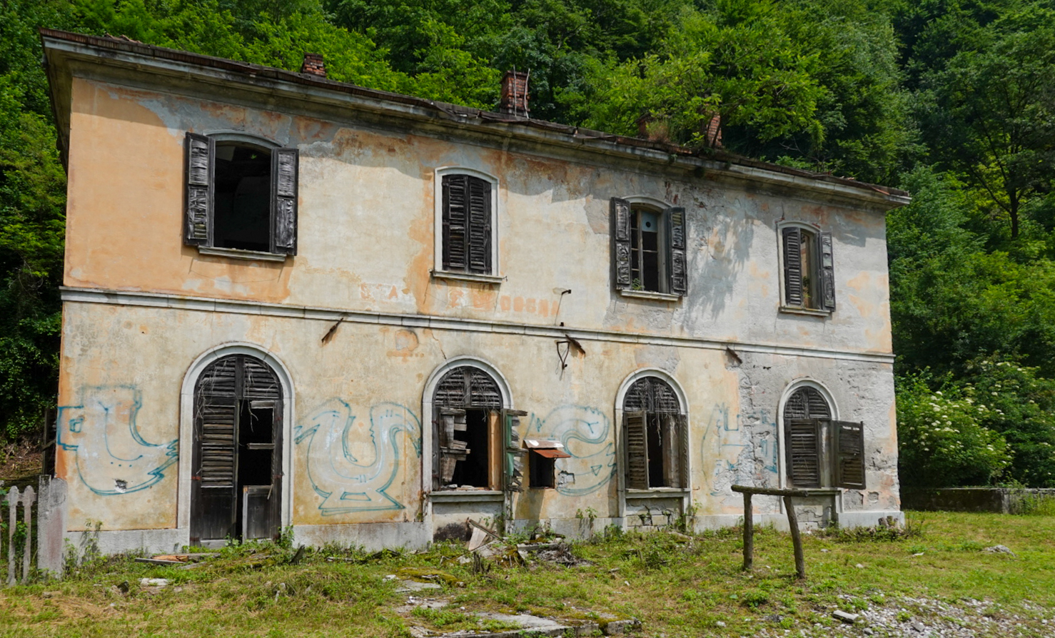 Auf unserer Strecke sehen wir viele, meist verfallene Gebäude aus dieser Zeit, die Bahnhöfe oder kleinere Wartungsgebäude waren.