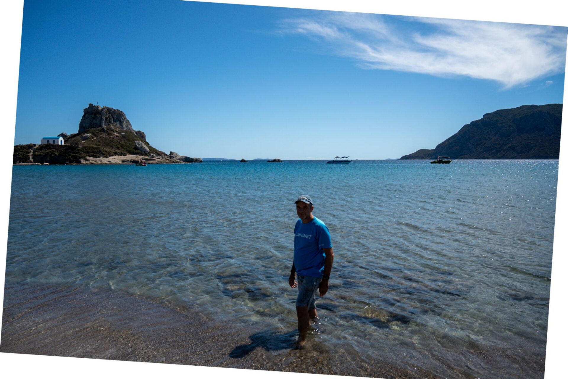 Weiter geht es Richtung Kefalos, wo wir in der Bar ‚Opa Opa‘ mal frühstücken, Mythos und Gyros. Hier hat man einen tollen Strandblick und man kann Menschen beobachten. Wir spazieren in Richtung Agios Stefanos, die kleine Postkartenkirche auf einer Insel, die man in jeder Blog-Story-Beschreibung über Kos findet. Überall in der Kefalos-Bucht zieht es die Blicke auf sich.