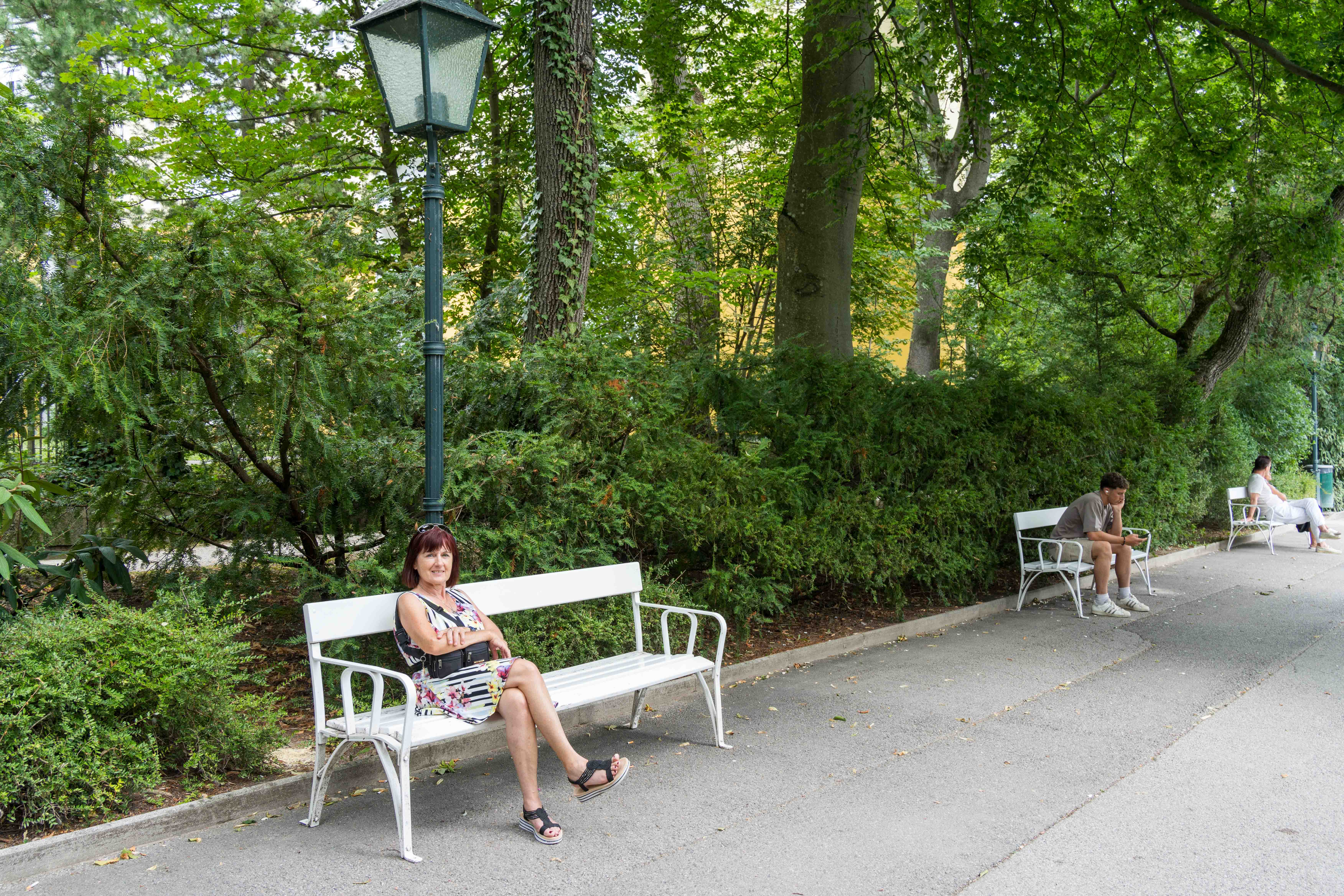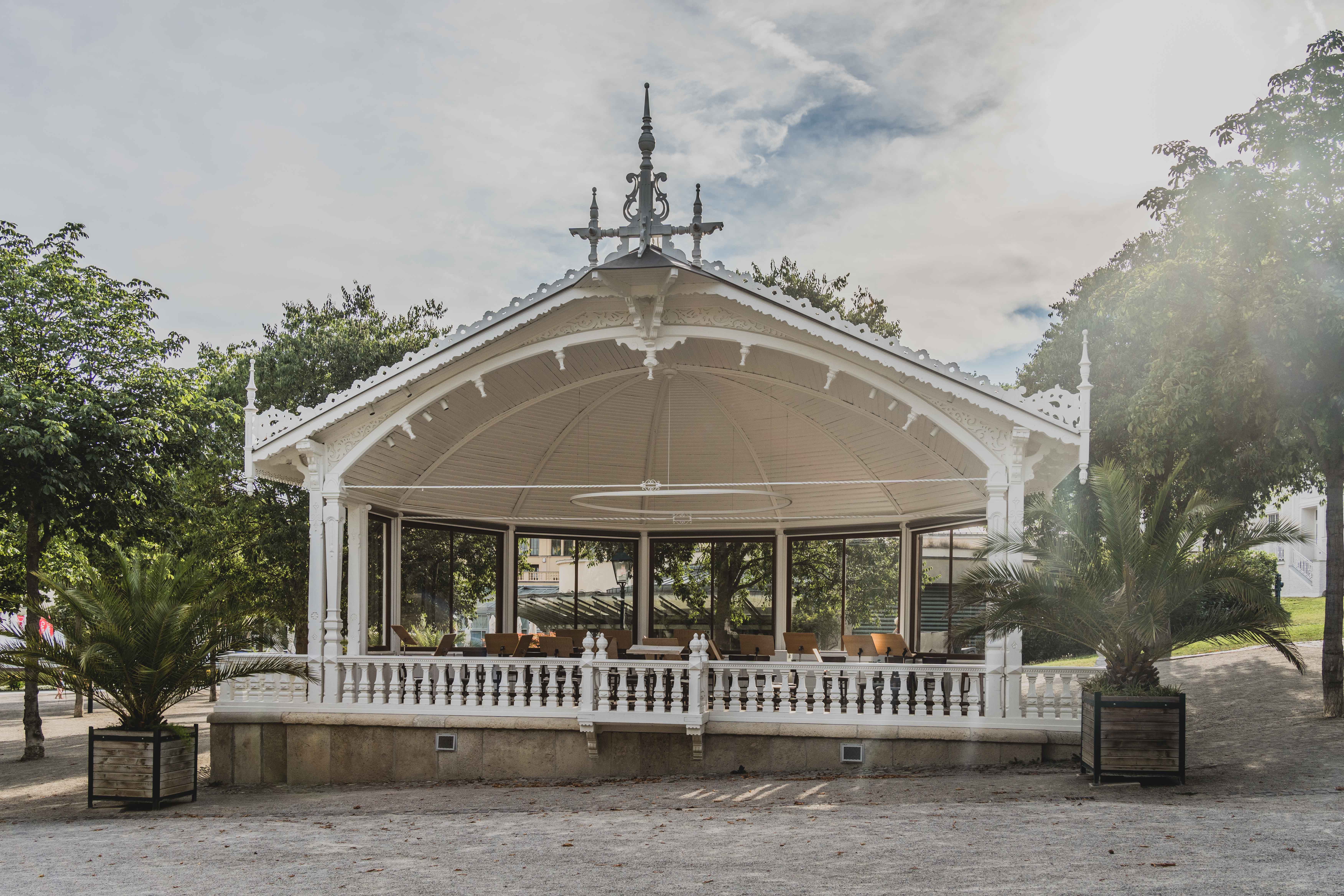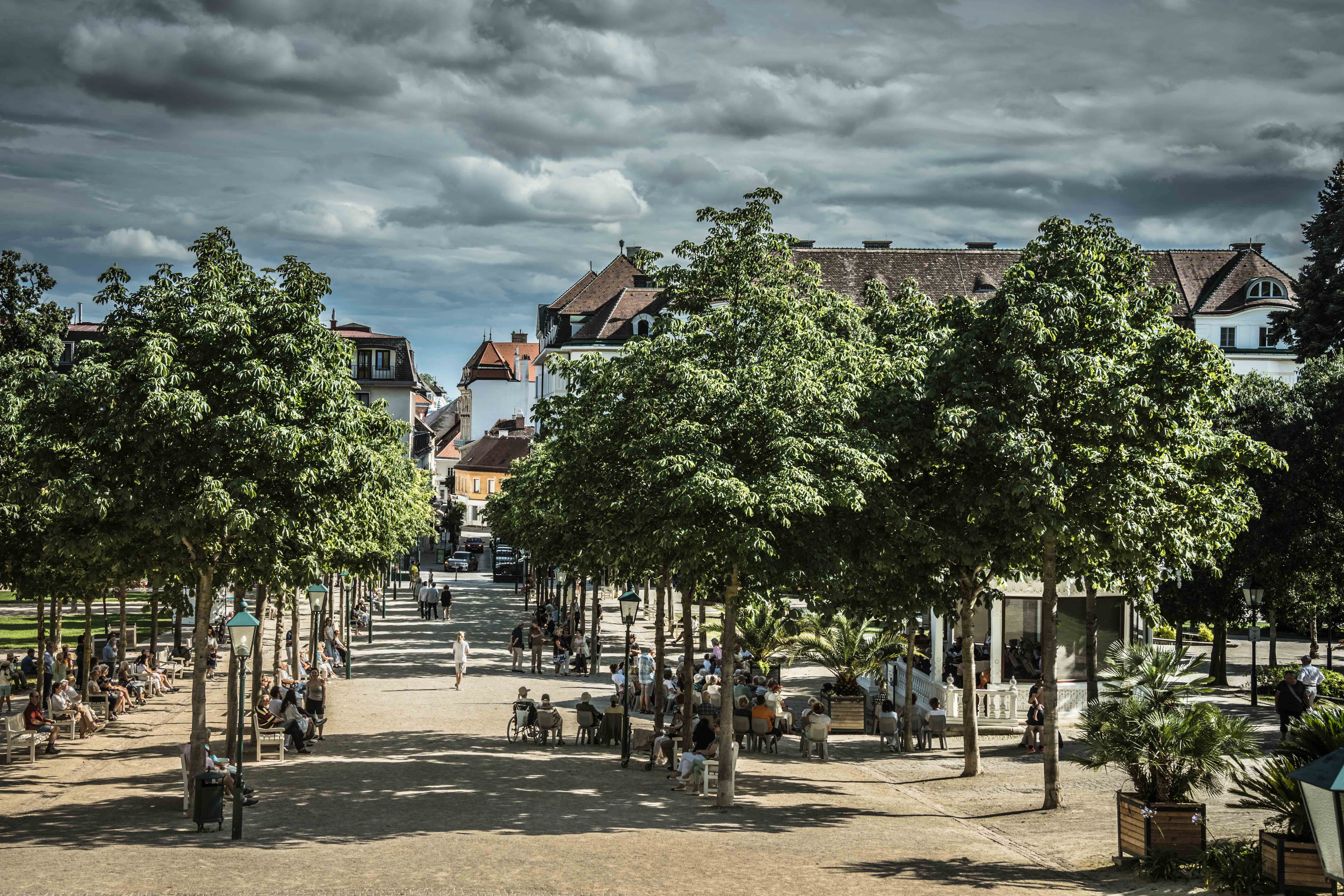 Auf dem Rückweg über den Mozarttempel stärkten wir uns im Kurpark Café Trahbüchler mit einem Elektrolyt-Getränk. Im Pavillon spielte ein Streichorchester klassische Melodien, eine nette musikalische Untermalung. Das Café gefiel uns ebenfalls sehr gut und so genossen wir den Abschluss unseres Besuchs, bevor wir wieder die Heimreise antraten.
