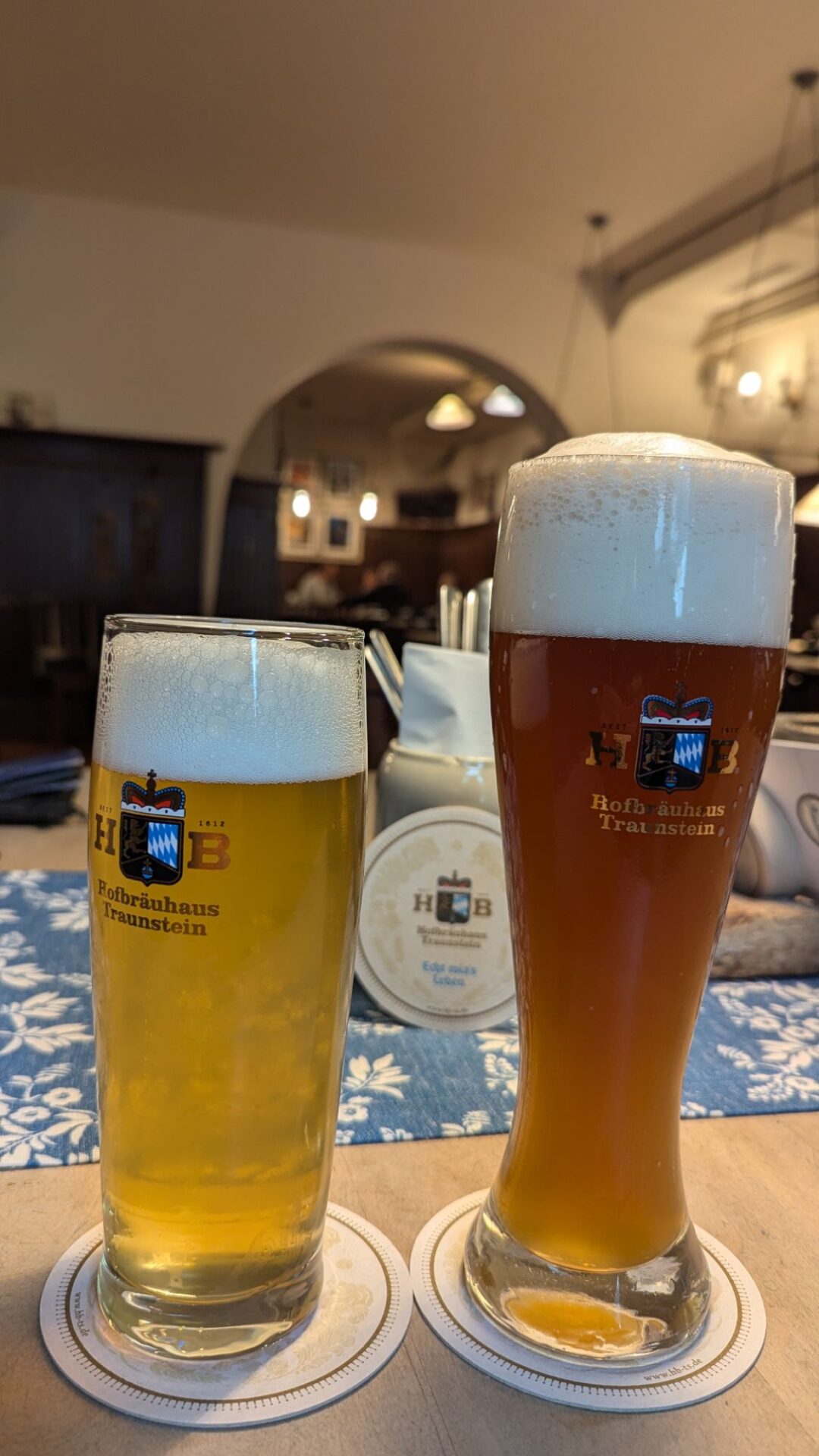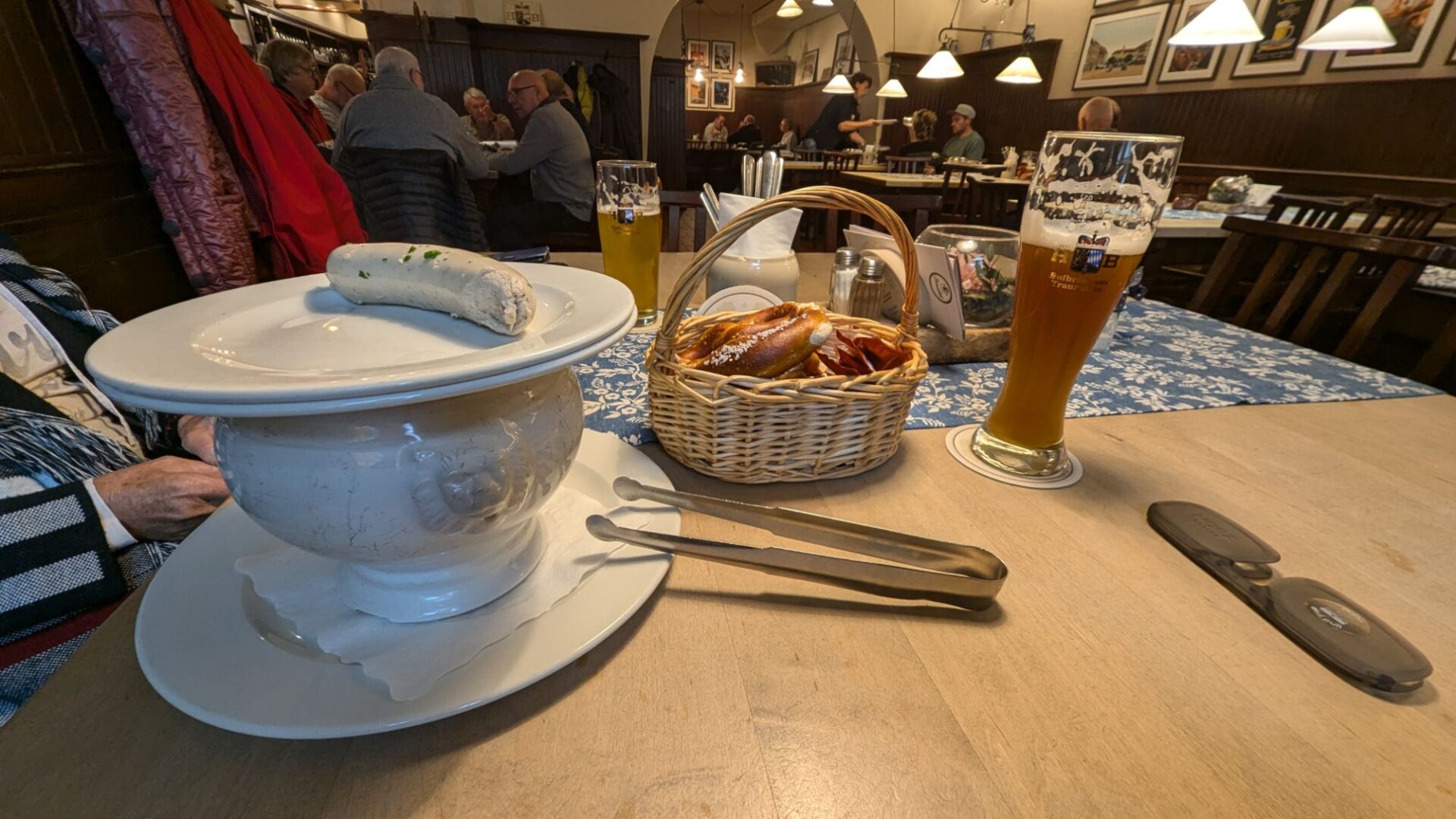 Da sich das Wetter nicht gebessert hat, beschließen wir nach dem Besuch des Filmstudios, wieder nach Hause zu fahren. Mit einem kleinen Zwischenstopp im Traunstein, wo wir im dortigen Hofbräuhaus eine Weißwurstjause einnehmen.