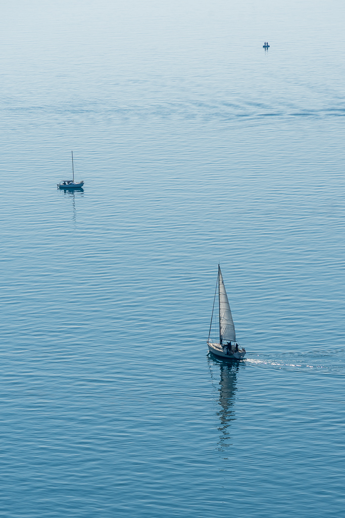 Wir wandern danach an das andere Ende des Wanderweges, bis zur Bar Ristorante Mare Pineta. Dort hat man einen schönen Blick auf einen Yachthafen und auf die Klippen. Der Weg ist relativ einfach zu gehen, wenn man einigermaßen trittsicher und nicht total außer Form ist. Am Weg selbst ist es verboten, mit der Drohne zu fliegen, was mich ehrlich etwas geärgert hat. Aber es hilft nichts, sie bleibt halt im Auto.