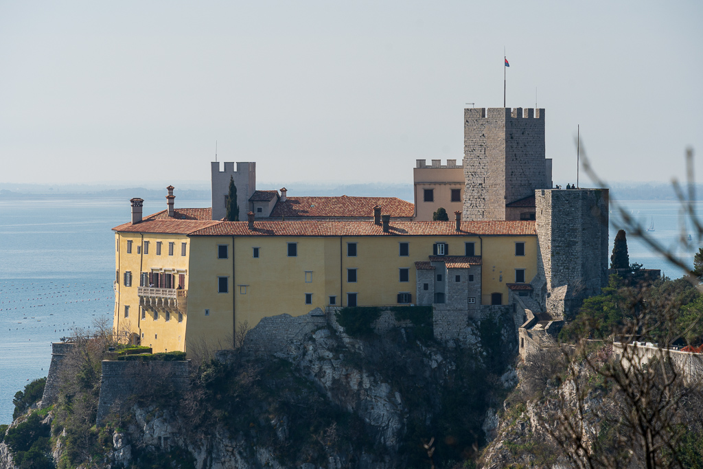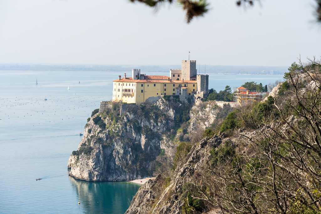 Das Schloss hat eine lange Geschichte, die bis ins Mittelalter zurückreicht. Es war im Besitz der Familie Thurn und Taxis, die bedeutenden Einfluss auf die Region hatte. Rainer Maria Rilke war 1912 Gast auf Schloss Duino, wo er Teile seiner „Duineser Elegien“ verfasste. Das Schloss ist heute ein Museum und ein Ort für kulturelle Veranstaltungen. Bevor man das Schloss erreicht, geht man an dem United World College of the Adriatic vorbei, einem gemeinnützigen College für Schüler aus aller Welt. Den Besuch des Schlosses sparen wir uns für das nächste Mal auf, das alte Schloss kann man leider nur aus der Ferne sehen.