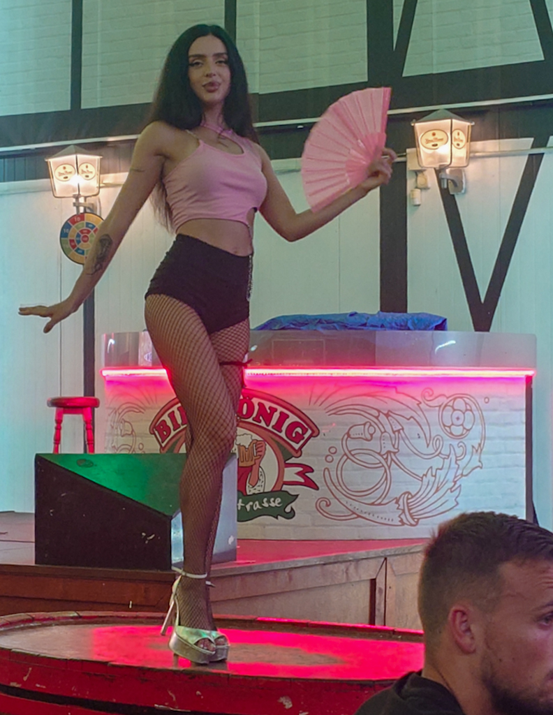 Der Rest des Tages ist Ballermann‑Atmosphäre. Wir sind nur 2,7 km von der sogenannten Schinkenstraße entfernt, also spazieren wir zum Bierkönig, wo wir eine Runde trinken und die ausgelassene Stimmung genießen. Auf dem Weg dorthin sehen wir bereits die ersten Bier‑„Leichen“ und ausgelassene Poltertouren. Der Rückweg in der Hitze ist dann doch recht anstrengend, und die Reiseleitung nach dem Fußmarsch genervt, sodass wir den Abend auf dem Balkon des Hotels ausklingen lassen.