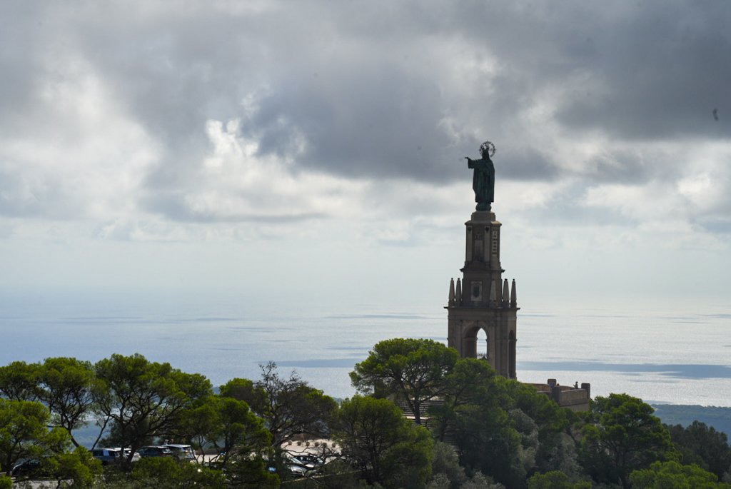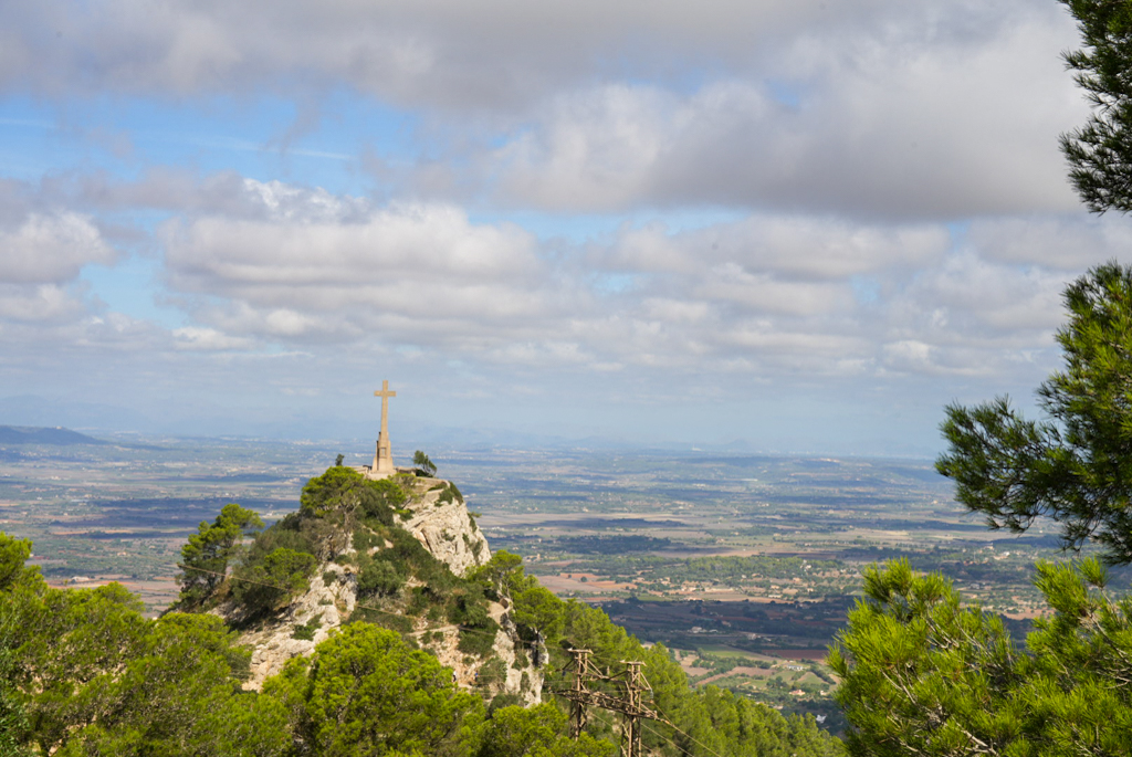 Weiter geht es nach all den Dörfern, Märkten und Stränden zu einem Ort auf Mallorca, der mit einer ganz anderen Art von Magie verzaubert: dem Santuari de Sant Salvador. Dieses alte Kloster thront auf einem der höchsten Gipfel im Osten der Insel, und bereits die Anfahrt ist ein echtes Abenteuer.Man fährt eine schmale, kurvenreiche Straße den Berg hinauf. Mit jeder Kurve wird der Ausblick besser, und man spürt, wie die Welt unter einem kleiner wird. Oben angekommen, ist der Lohn einfach atemberaubend! Das ehemalige Kloster und die Kirche selbst sind beeindruckende, uralte Gebäude aus dem 14. Jahrhundert, die eine unglaubliche Ruhe ausstrahlen. Das Highlight ist die 360‑Grad‑Sicht: Der Blick schweift über fast die gesamte Ostküste Mallorcas, bis zur Serra de Llevant und sogar bis zum Meer. Am höchsten Punkt thront ein riesiges Steinkreuz und eine Christus‑Statue, die fast so wirken, als würden sie über die ganze Insel wachen. In diesem Moment fühlt man sich klein und gleichzeitig tief mit allem verbunden.