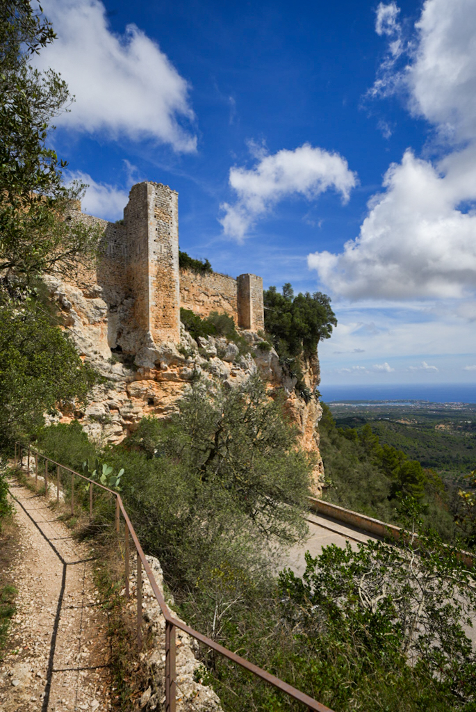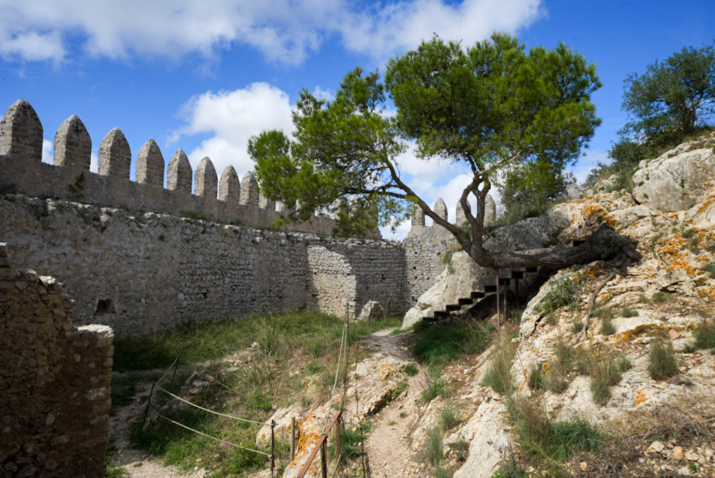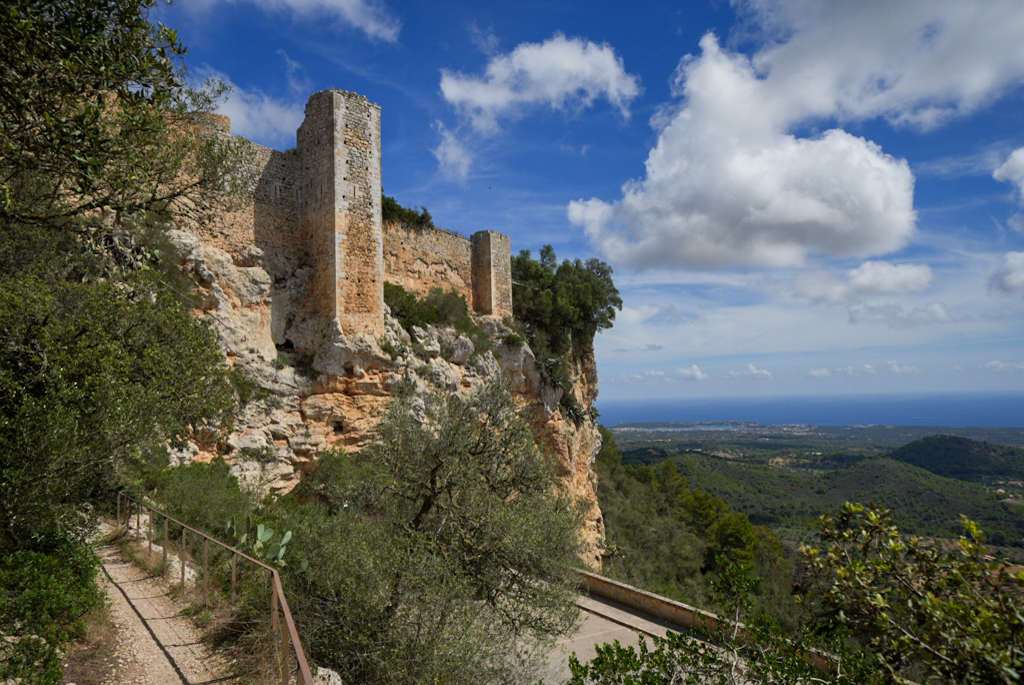 Das nächste Ziel ist die imposante Festung Castell de Santueri. Sie thront wie ein stummer Wächter auf einem Berg in der Nähe von Felanitx, und schon von weitem ist ihre gewaltige Präsenz zu spüren.Man fährt eine enge, kurvenreiche Straße hinauf und steht vor den massiven Steinmauern. Diese Festung ist kein kleines Schloss, sondern eine gigantische Burgruine, die bereits von den Römern genutzt und in maurischer Zeit eine wichtige Rolle spielte. Die Geschichte liegt förmlich in der Luft, denn diese Mauern haben jahrhundertelang die Insel vor Eindringlingen geschützt.Der Weg über das weitläufige Gelände ist wie eine Zeitreise. Man spaziert über die alten Mauern, schaut durch die Schießscharten und kann sich vorstellen, wie hier einst Wachen standen und über die Bucht von Cala d’Or bis nach Porto Colom Ausschau hielten. Der Ausblick von oben ist einfach atemberaubend: Man blickt über die gesamte Küste und die sanfte Hügellandschaft. Es ist eine der besten Aussichten, die die Insel zu bieten hat.