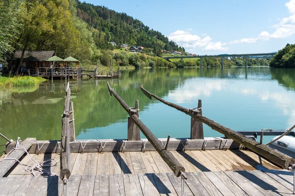 Los geht die Reise auf einem handgefertigten Floß aus Holz, umgeben von der unberührten Natur der Drau. Das Plätschern des Wassers, das Zwitschern der Vögel und der Geruch des frischen Holzes schaffen eine Atmosphäre, die Sie in eine andere Zeit versetzt.