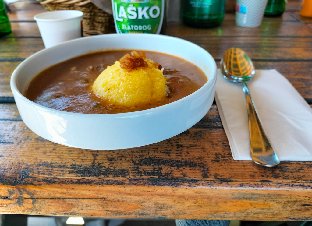 Kulinarisch werden wir gut verwöhnt: Es gibt Slivo, Gulasch und Kaffee. Natürlich kann man auch Getränke kaufen und genießen.