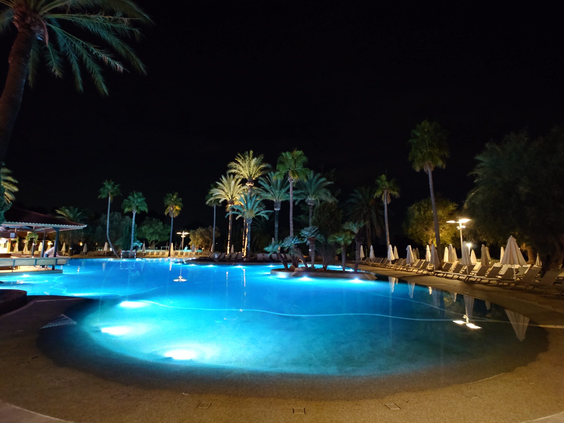 Betlem, der nächste Ort, hat leider keinen Flair, also zurück zum Hotel. Vorher kaufen wir in einer typischen Tienda ein – bei El Lidl. Heute essen wir am Balkon, weil wir noch ins Spa wollen.Das Spa ist leider eine Enttäuschung: ein Innenpool zum Bahnen schwimmen und ein kleiner Infinity‑Pool mit kaltem Wasser. Alles andere kostet extra, obwohl in unserer Buchung nichts davon stand. Etwas netter ist der Außenpool, den wir uns jedoch mit Enten teilen müssen; Fotos folgen im nächsten Bericht.
