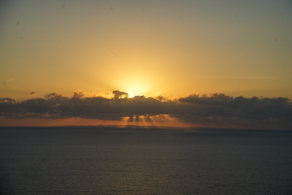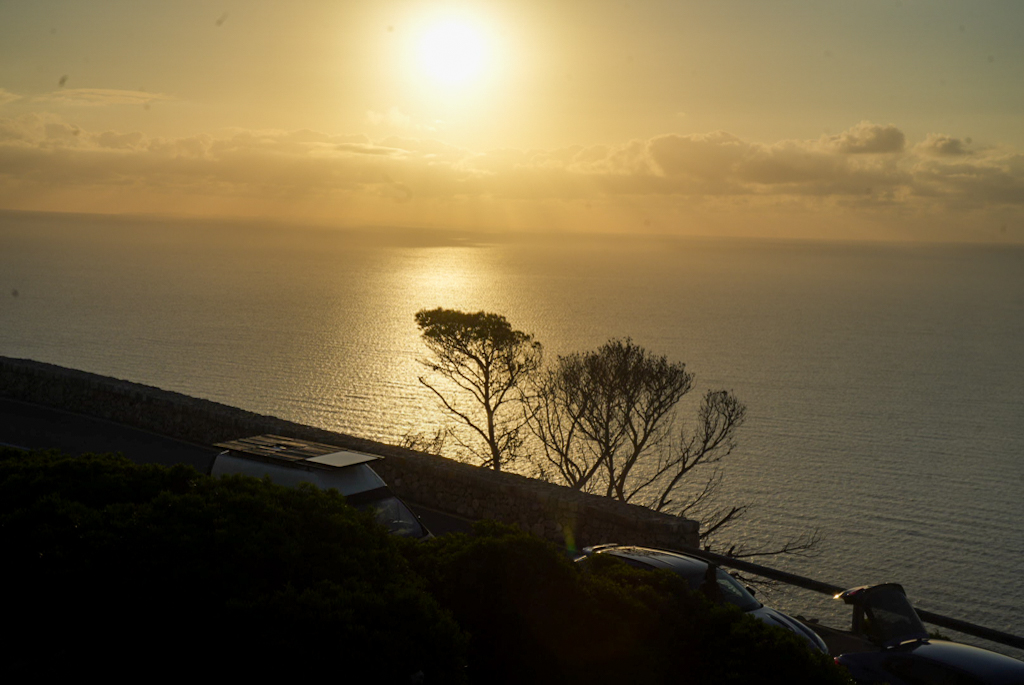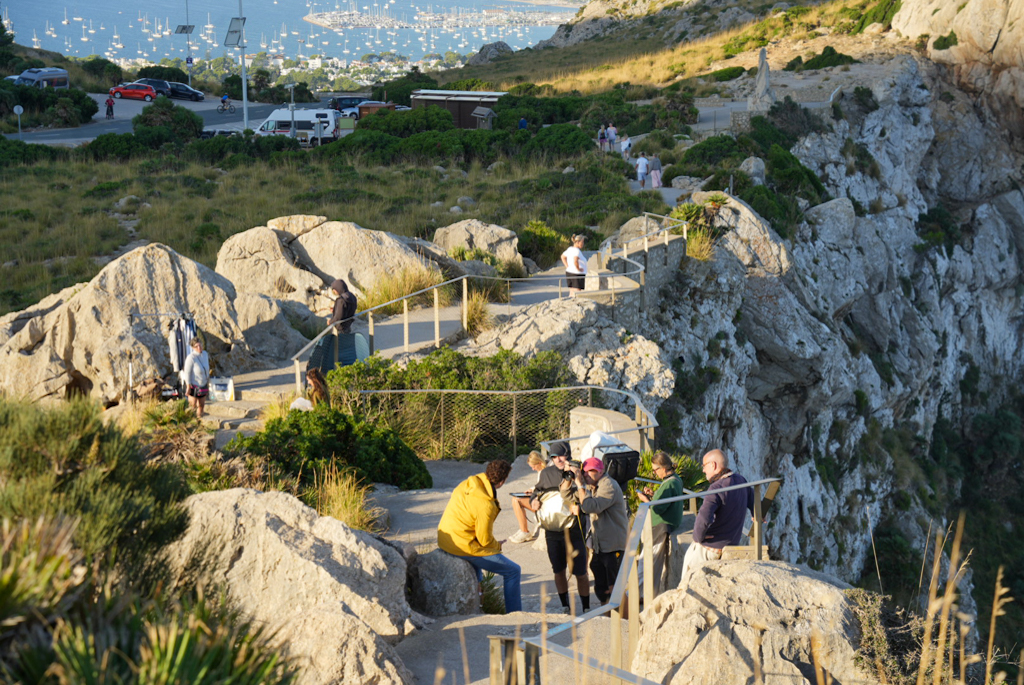 Wir wachen sehr früh auf, dank einiger Urlauber, die glauben, um 4 Uhr 25 Minuten schon im Gang schnattern zu müssen. Zwei Damen aus unserem Nachbarland unterhalten sich lautstark über ihren Heimflug, bis 6 Uhr können wir noch dösen. Dann beschließen wir, zum Kap Formentor zu fahren.Die Fahrt ist spannend; anscheinend haben mehrere dieselbe Idee. Ich möchte mir nicht vorstellen, wie es ist wenn die Busse die Touristen raufkarren – es gibt einige Engstellen, wo es bereits mit zwei PKWs eng wird. Noch sind zumindest nur PKWs unterwegs, aber von denen genug. Wir ergattern schließlich einen Parkplatz und erleben das Ende des Sonnenaufgangs, der recht schön ist.