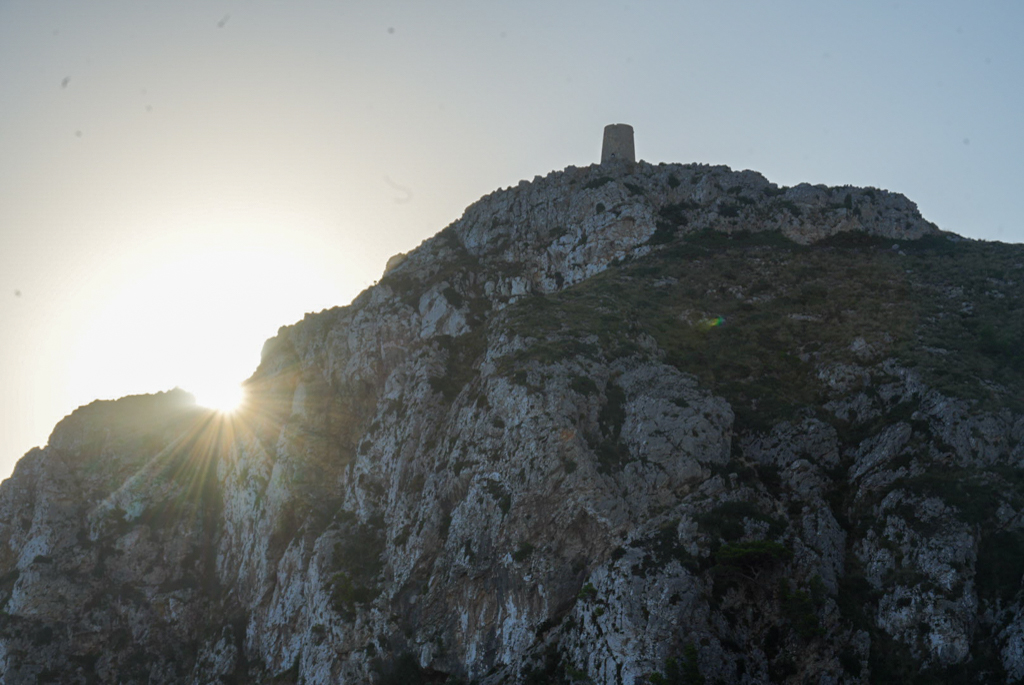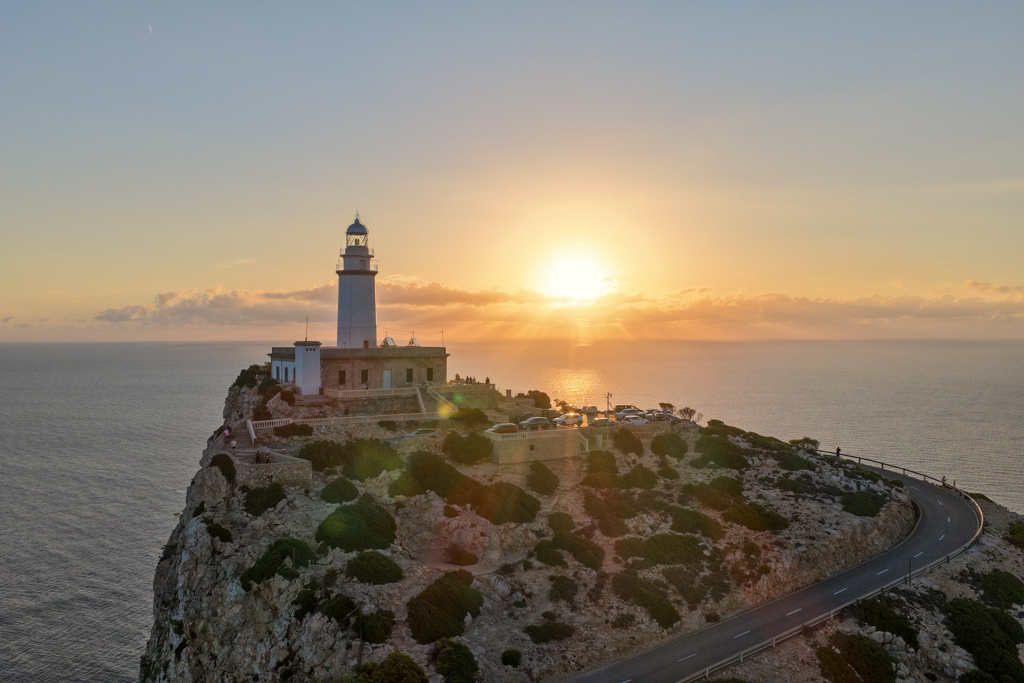 Das Licht des neuen Tages legt sich auf den alten Steinturm, der seit über 160 Jahren die Südspitze Formentors bewacht. Der zylindrische Turm aus lokalem Kalkstein ist 15 Meter hoch; seine Laterne, ursprünglich mit Öllampe betrieben, erhielt 1925 ein elektrisches Licht mit einer Reichweite von etwa 16 Seemeilen. 1995 erfolgte eine Modernisierung, bei der ein automatisches Rotationssystem installiert wurde – seitdem ist kein Leuchtturmwärter mehr vor Ort nötig.