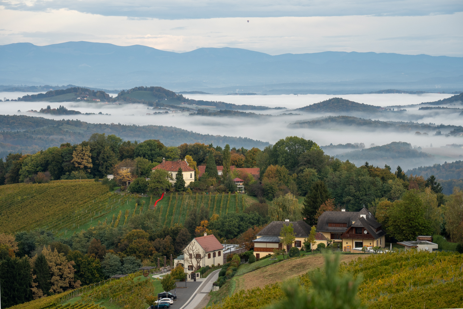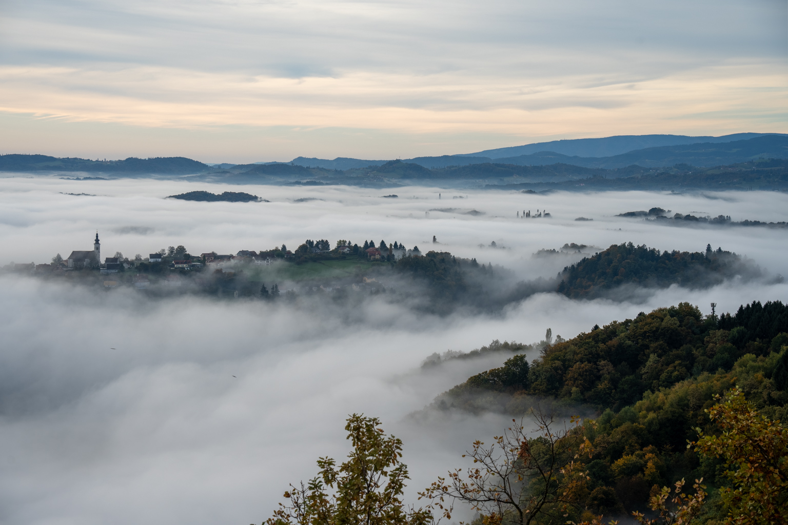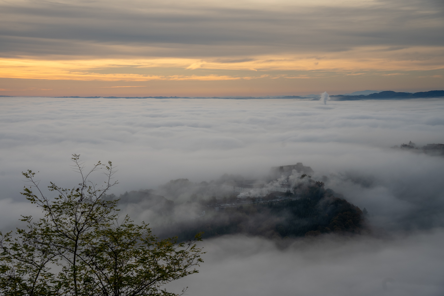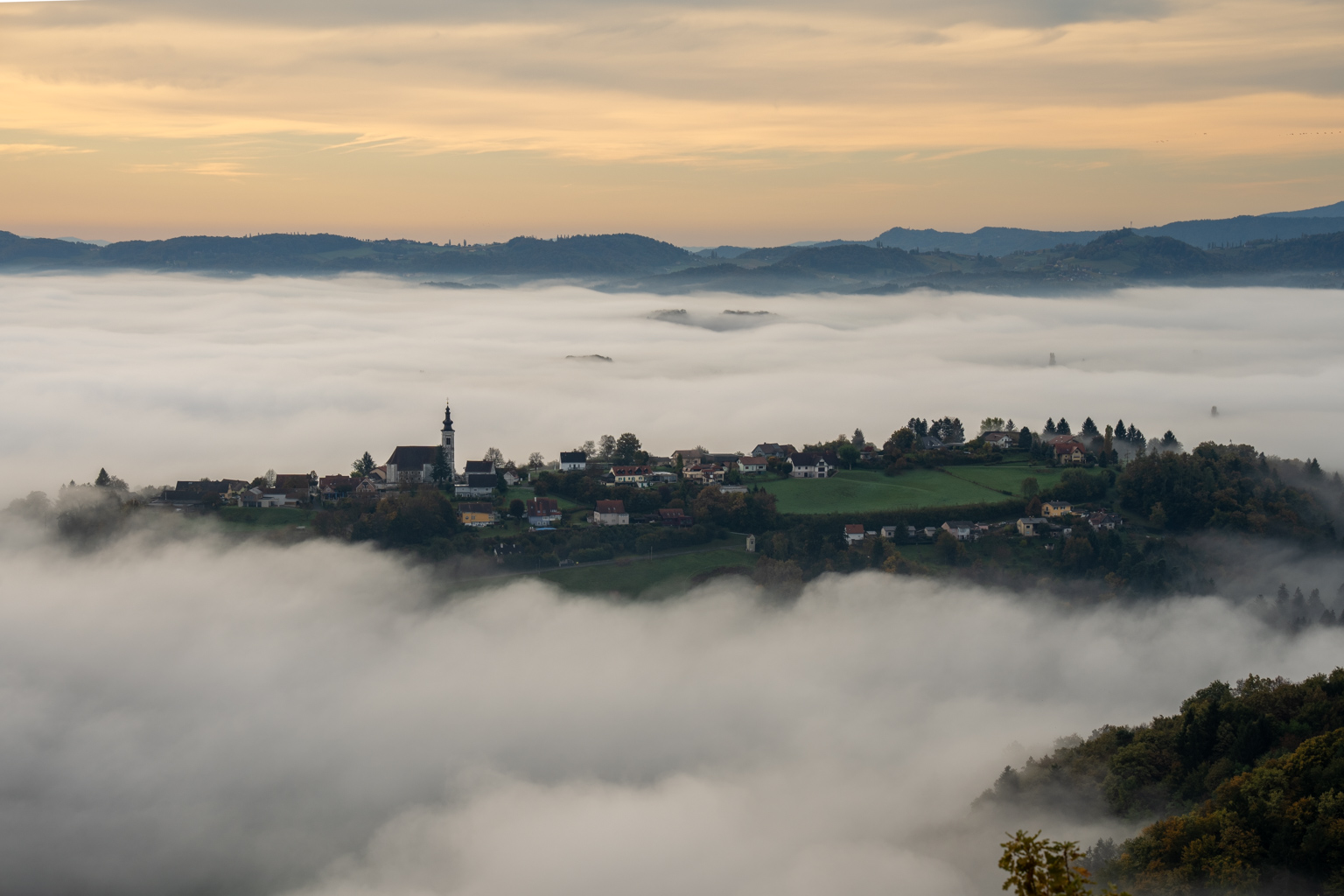 Für die 52 Wochen Foto Challenge stand diese Woche ganz im Zeichen von Monochrom. Eigentlich hatte ich etwas Ausgefalleneres im Sinn, aber der dichte Nebel, der sich heute Morgen wie ein mystisches Tuch über die Landschaft legte, bot eine unverhoffte Gelegenheit. Von Leibnitz aus erhoffte ich mir, die höheren Gebäude der Stadt aus dem Nebel herausragen zu sehen, doch der Schleier war einfach zu dicht. Also machte ich mich auf den Weg zur Kogelbergwarte. Und siehe da, Frauenberg und Schloss Seggau tauchten wie Fata Morganas aus der Nebelsuppe auf. Ein atemberaubendes Panorama, das sich ständig veränderte. Jedes Mal, wenn ich meinen Blick schweifen ließ, bot sich ein neues, faszinierendes Bild.