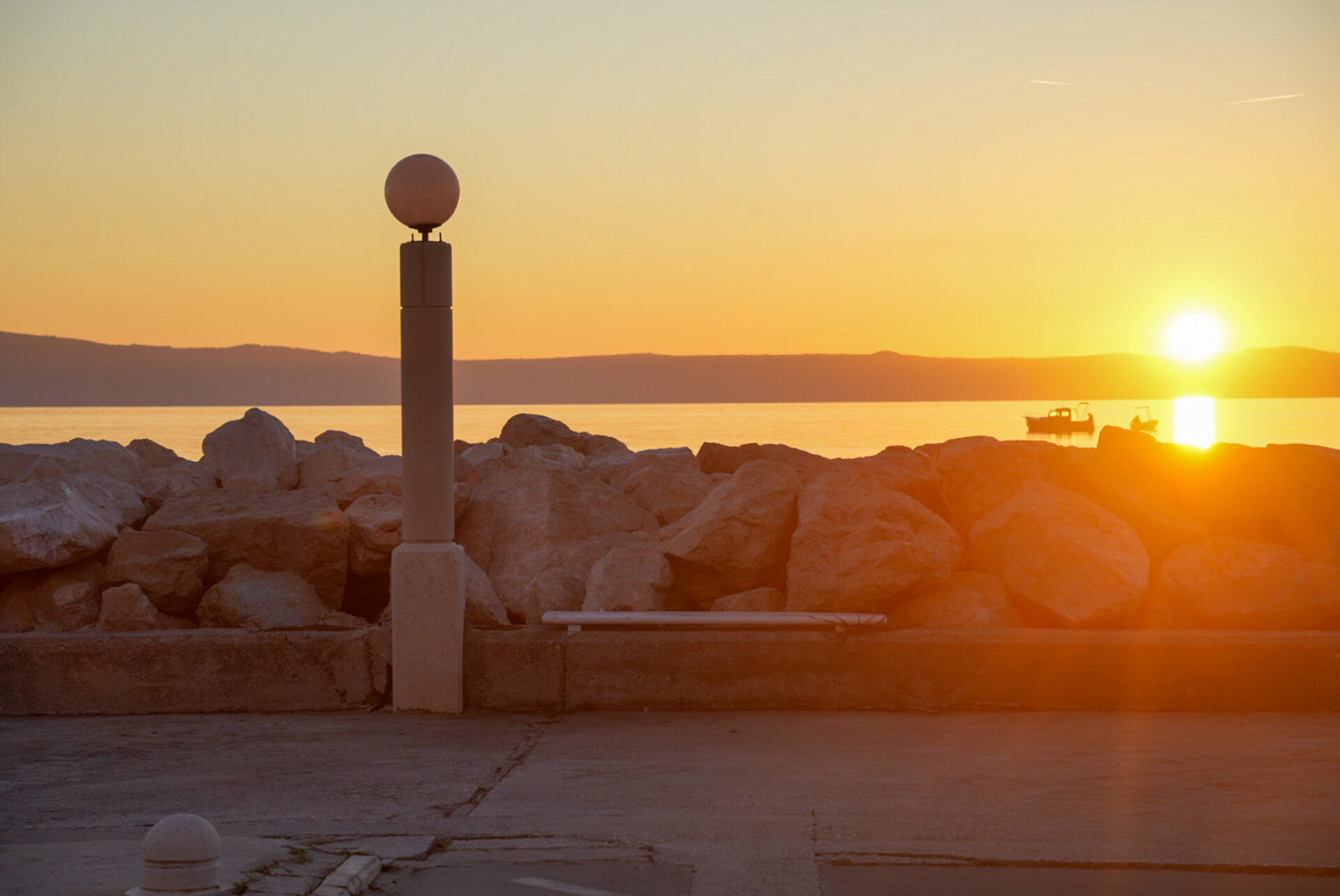 Auf der Heimfahrt beschlossen wir, noch einmal in Tučepi anzuhalten. Im Bistro La Strada genossen wir ein Bier und ein gutes Abendessen. Der geniale Sonnenuntergang trug zur netten Atmosphäre bei. Das Essen war zwar nicht typisch kroatisch, aber sehr gut und empfehlenswert.