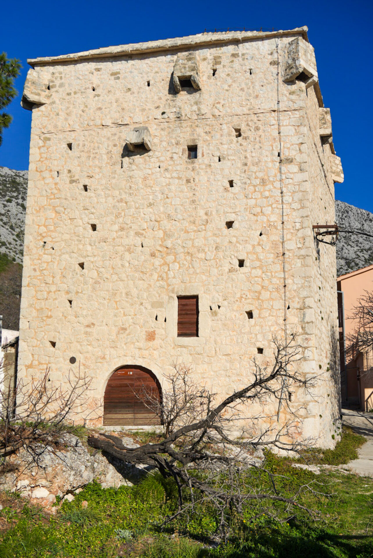 Weiter ging es nach Igrane, wo der Turm von Zale schon von Weitem sichtbar ist. Der Turm von Zale (Zalina kula) in Igrane, Kroatien, ist ein Wehrturm aus dem 17. Jahrhundert. Er wurde während des Kandischen Krieges zum Schutz vor türkischen Angriffen erbaut und ist nach Ivan Antičić-Zale benannt, einem lokalen Helden im Kampf gegen die Türken. Der steinerne Turm befindet sich auf einer Anhöhe in der Nähe der Kirche Gospa od Ružarija und bot strategische Vorteile für die Verteidigung. Heute ist der gut erhaltene Turm eine beliebte Sehenswürdigkeit und ein Symbol für den Widerstand der Bevölkerung. Er bietet einen schönen Ausblick auf Igrane und die Umgebung. In der Nähe des Turms stehen einige interessante, verfallene Häuser. In einem dieser Häuser erkennt man noch die Reste der erwähnten Toilette.