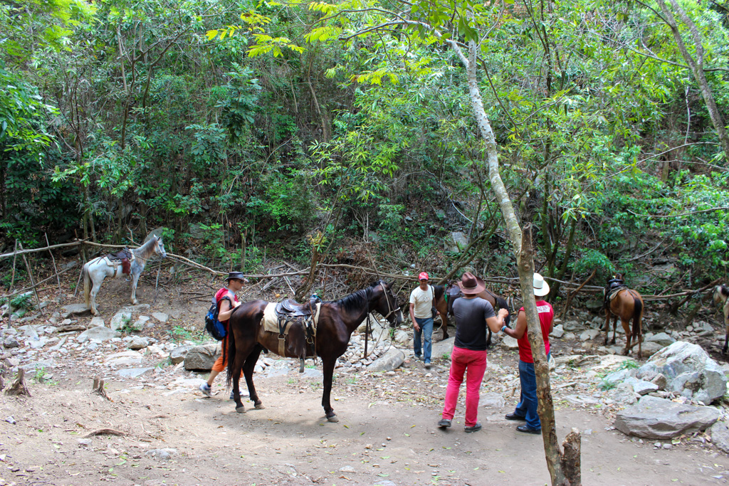 Am nächsten Tag machten wir einen Ausritt zu Salto del Caburni, einen Wasserfall mit natürlichem Pool zum Schwimmen. Der Ritt war anstrengend aber schön, durch Wälder und bei Farmen vorbei. Leider hat der Rezeptionist, der den Ausritt organisiert hat, uns nicht erzählt, dass der Wasserfall nur im Sommer Wasser hat. Aber der Ausritt ist nett und auch unser Guide (wie ein Cowboy aus einem Western) ist sehr nett, obwohl er kein Wort Englisch spricht und wir zu wenig spanisch.
