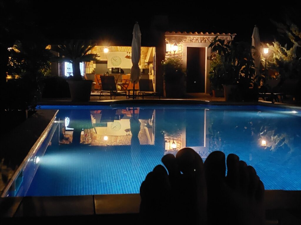 Zurück bei der Finca, am Pool, genießen wir den lauen Abend und ich schreibe den Blog.