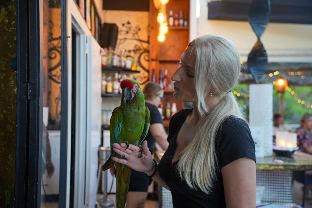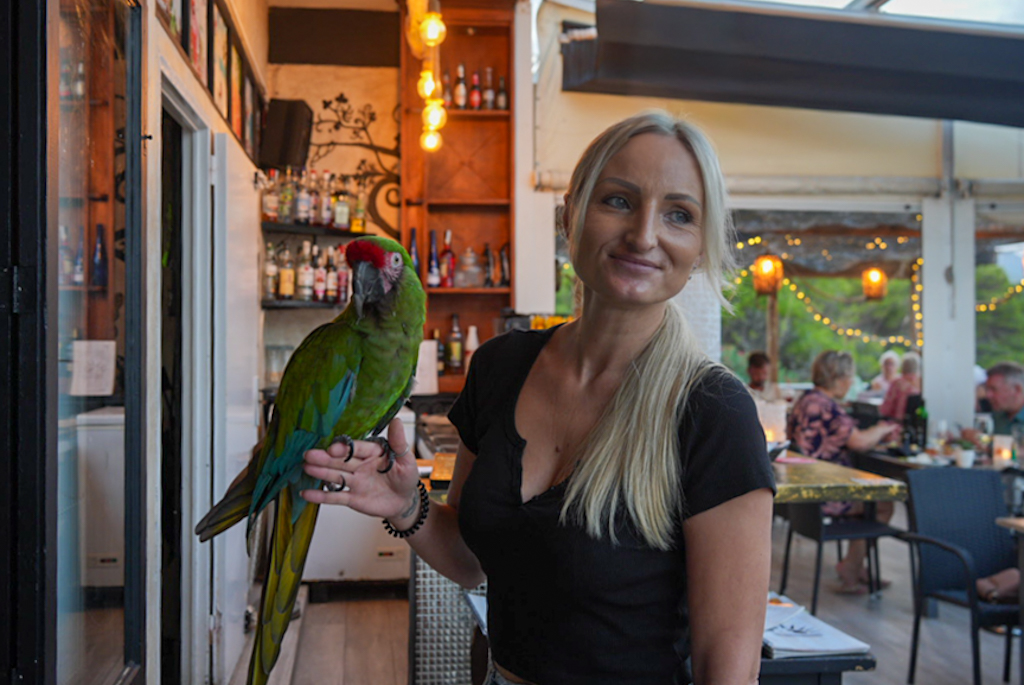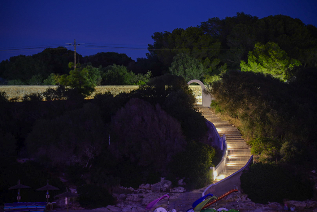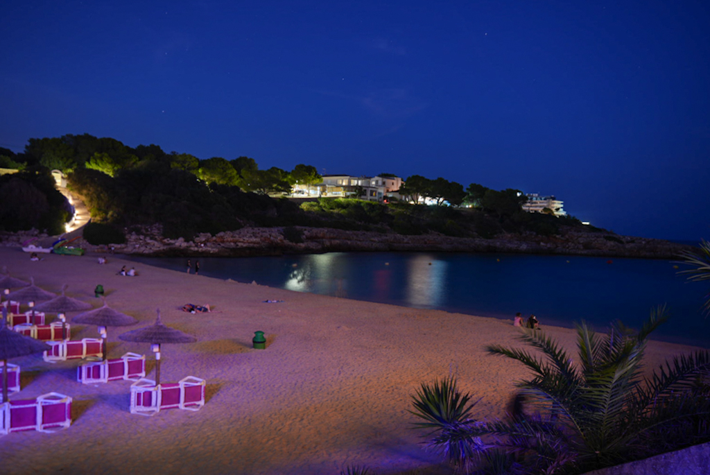 Wir verbringen den Nachmittag am Pool und planen, am Abend im Ort essen zu gehen. Das einzige vernünftige Lokal hat leider keinen freien Tisch, die Supermärkte im Ort sind eher klein, also Planänderung. Wir steigen wieder ins Auto und fahren nach Portocolom, zumindest zur Cala Marcal‑Bucht. Dort ist es leider hässlich: nur Tourismus, Hotels und Appartements im Einheitsstil. Im Café Chill Out La Playa bekommen wir jedoch einen Zweiertisch, essen preiswert und sind mit 30 € satt. Leider gibt es nur Veltins, kein Bier, das den Namen „Bier“ verdient.