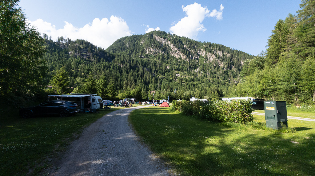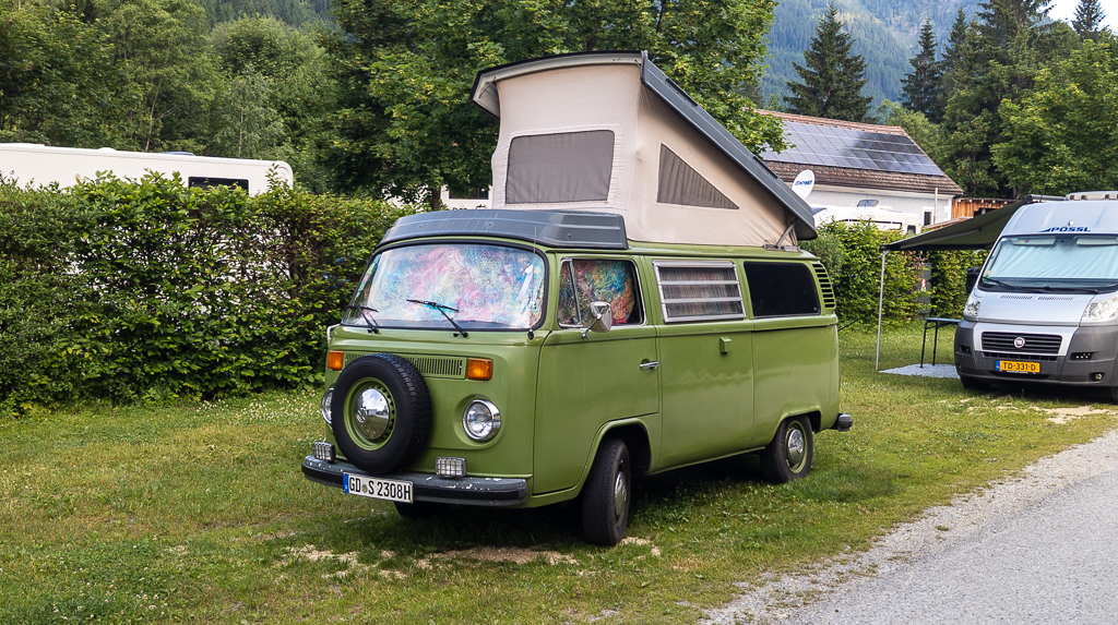 Am Campingplatz angekommen, kommen uns einige Mopeds entgegen, anscheinend gibt es Klubs, die Ausflüge mit diesen Dingern veranstalten. Sowieso interessant, was sich so auf einem Campinplatz herumtreibt: 2 Damen mit Uralt-Bulli auf Ihrer Europareise, ein Herr auf einem Erwachsenentretroller.