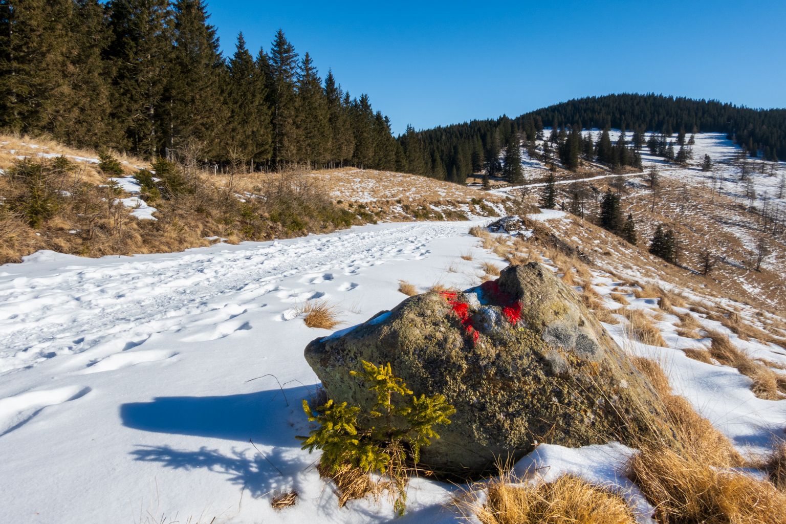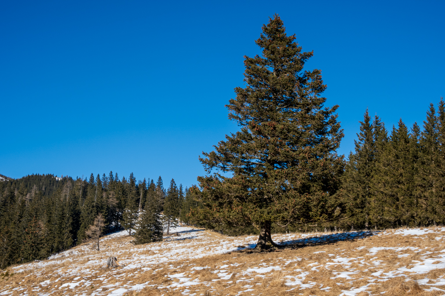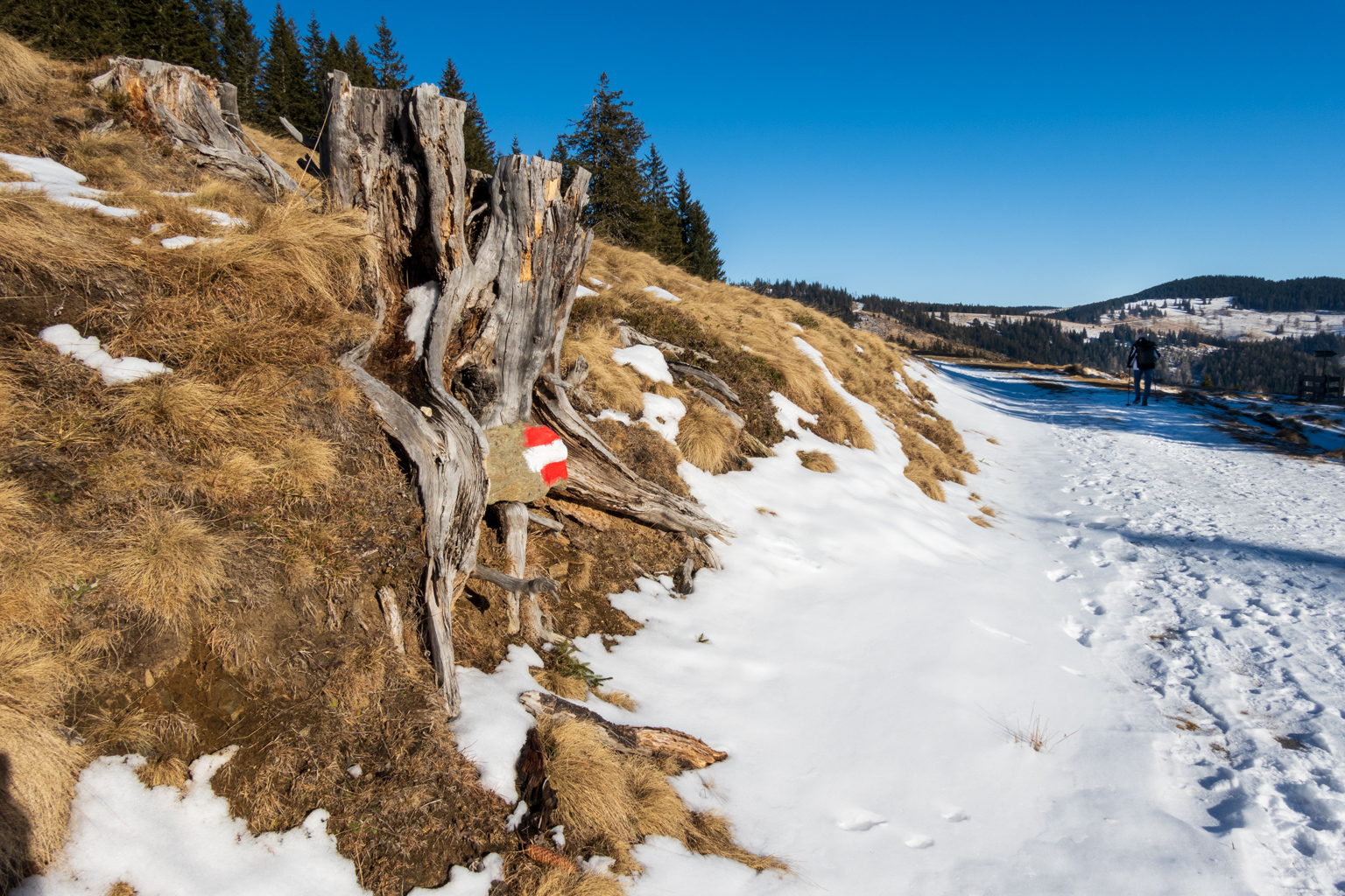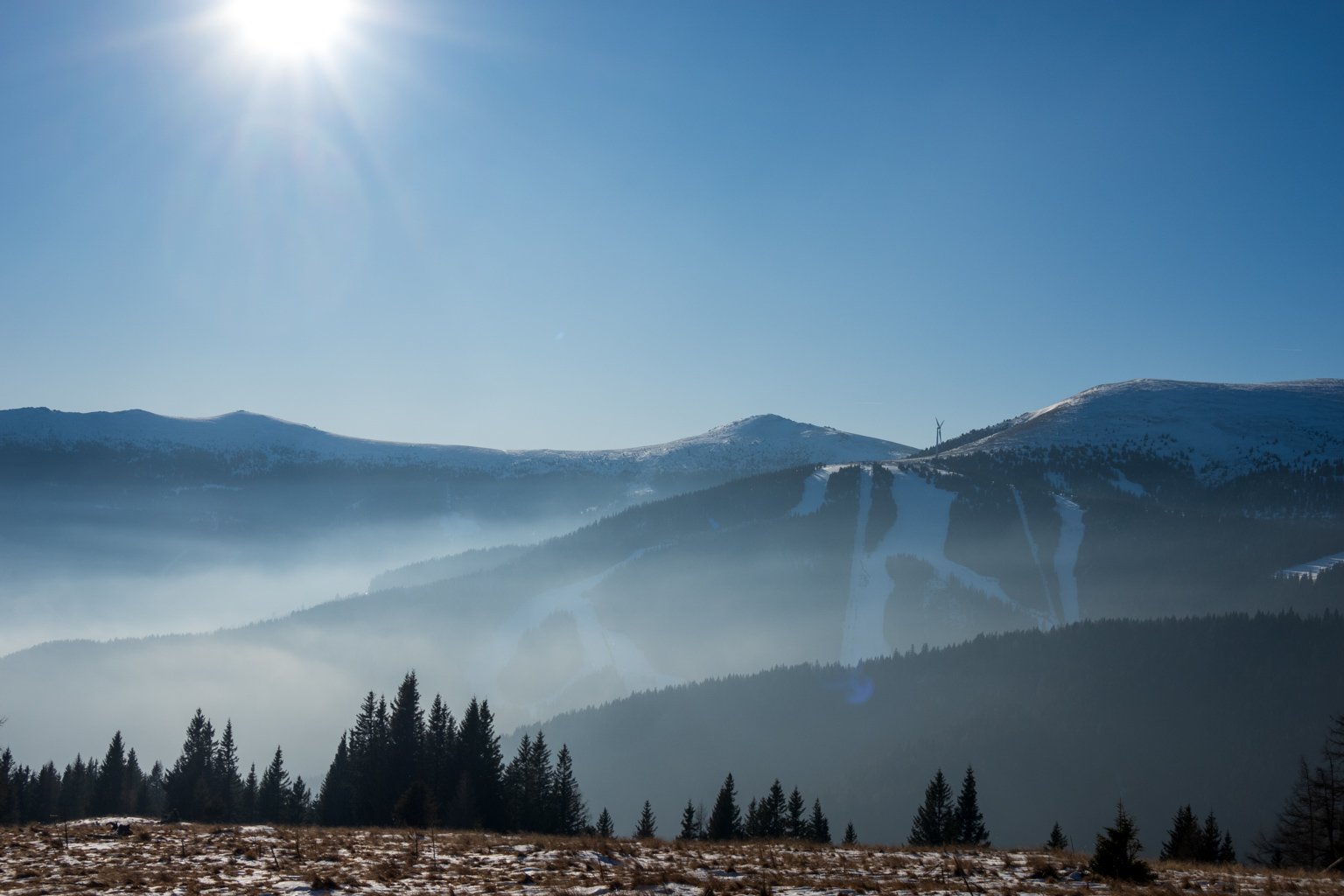 Kurzentschlossen entschieden wir uns am Freitag, zum Gaberl, genauer gesagt zum Alten Almhaus, zu fahren, um etwas Schnee und hoffentlich auch Sonne zu genießen. Kurz vor dem Alten Almhaus ging unser Plan dann auch auf: Wir durchbrachen den Nebel und fanden uns in prächtigem Wetter wieder. Einige Autos parkten bereits, aber es gab noch genügend Platz beim Alten Almhaus, sodass wir problemlos einen Parkplatz fanden.