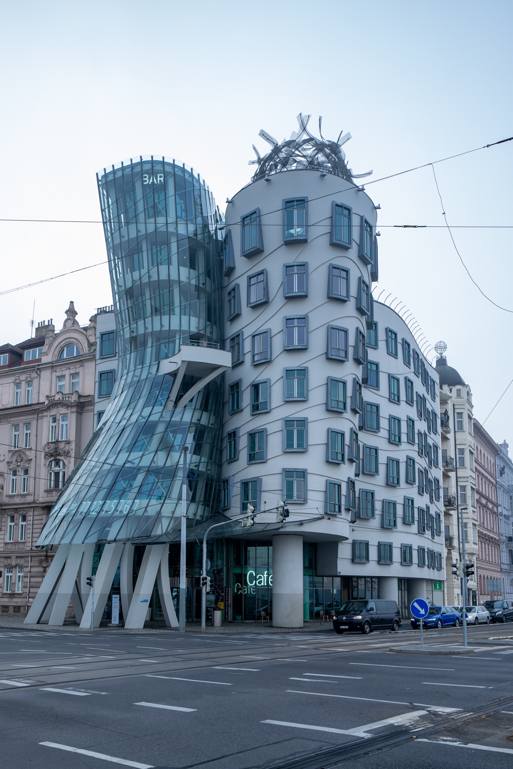Das Tanzende Haus, 1996 errichtet, dieses architektonische Meisterwerk, das an zwei tanzende Figuren erinnert, ist ein markanter Kontrast zur umliegenden gotischen Bauweise und zeugt von der lebendigen Kunstszene der Stadt.