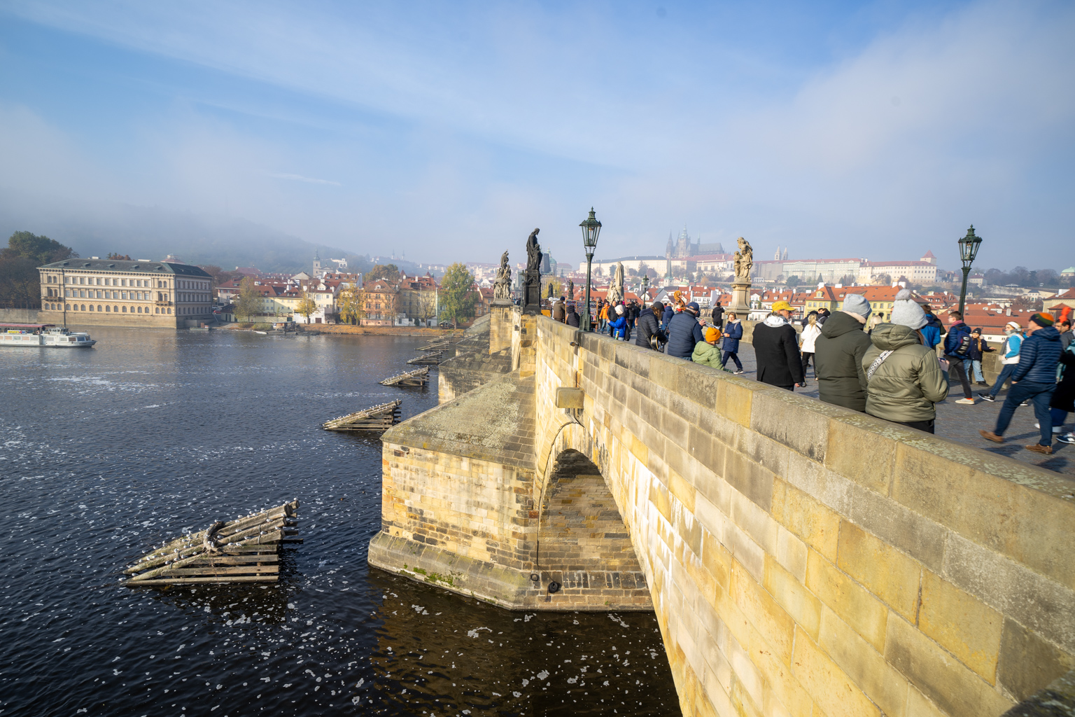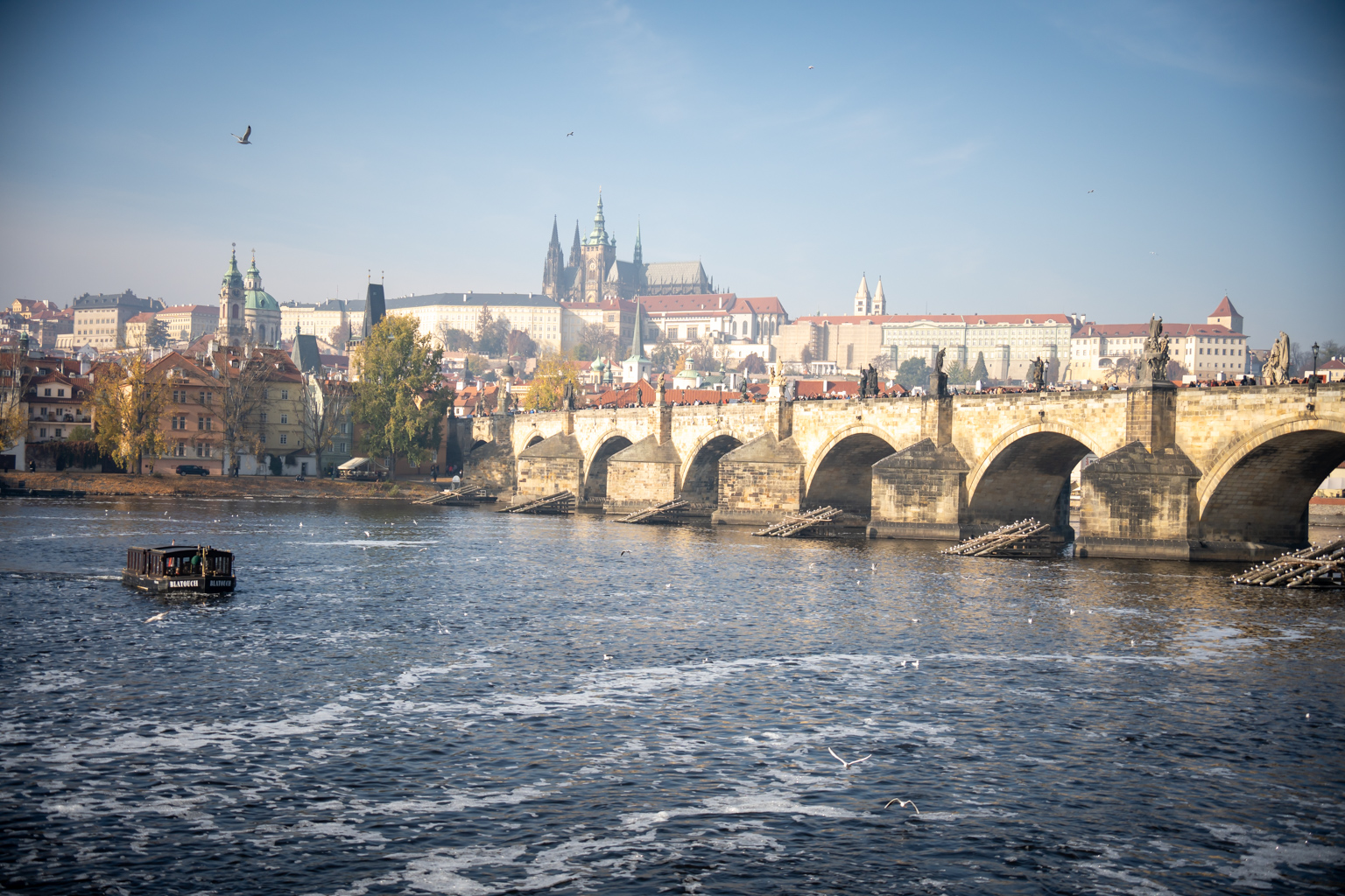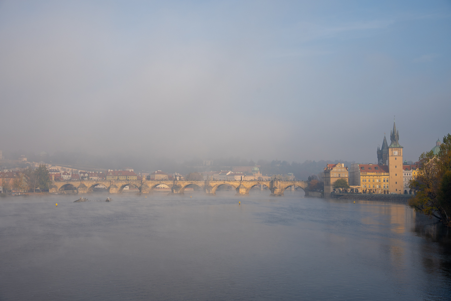 Nach einem ausgiebigen Frühstück und einer weniger ausgiebigen erholsamen Nacht geht es wieder los Richtung Moldau. Wir fotografieren an der schönen Moldau (eher nebelig), die berühmten tanzenden Häuser und ausgiebig Brücken und Gebäude.