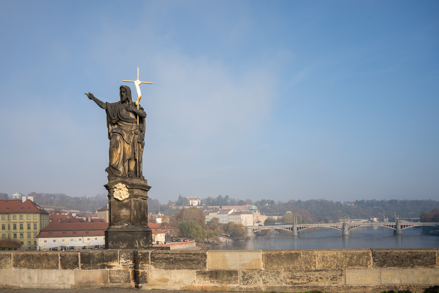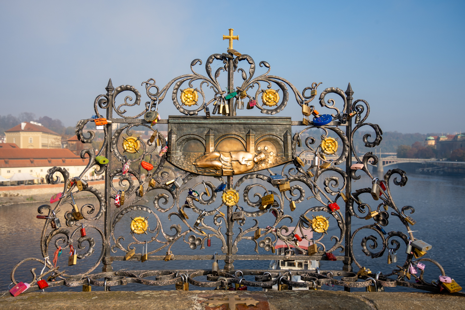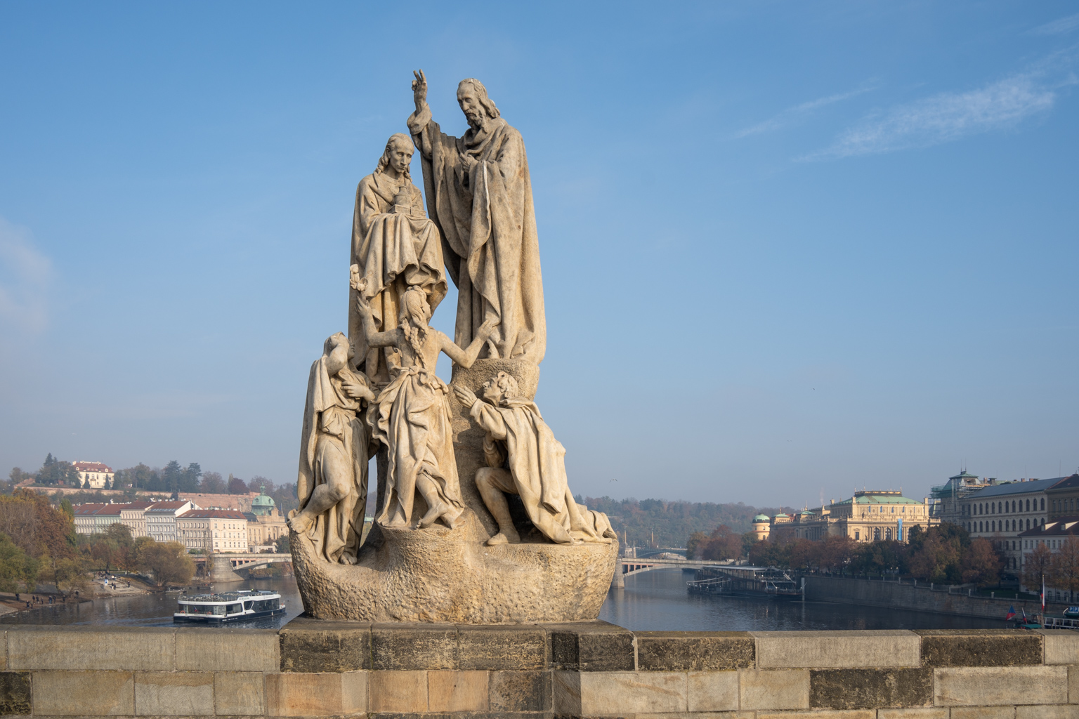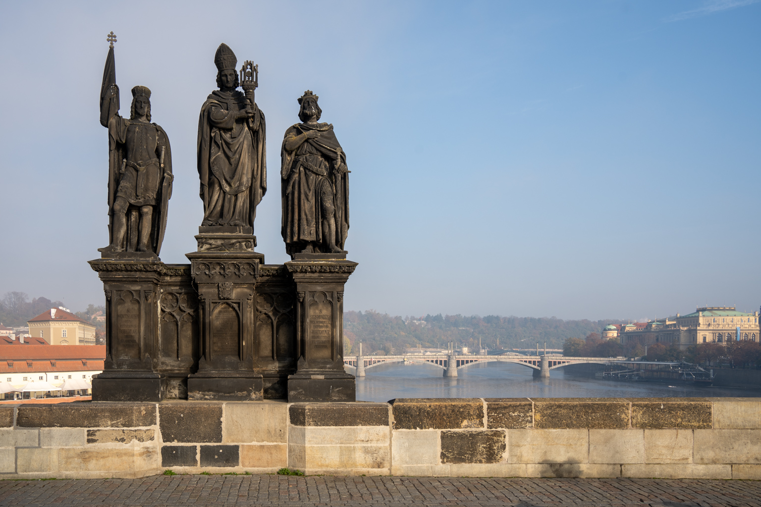 Die berühmtesten Statuen der Brücke stellen Heilige und Schutzheilige dar. Eine Legende besagt, dass man sich beim Überqueren der Brücke einen Wunsch erfüllen kann, wenn man die Statue des Heiligen Johannes von Nepomuk berührt.