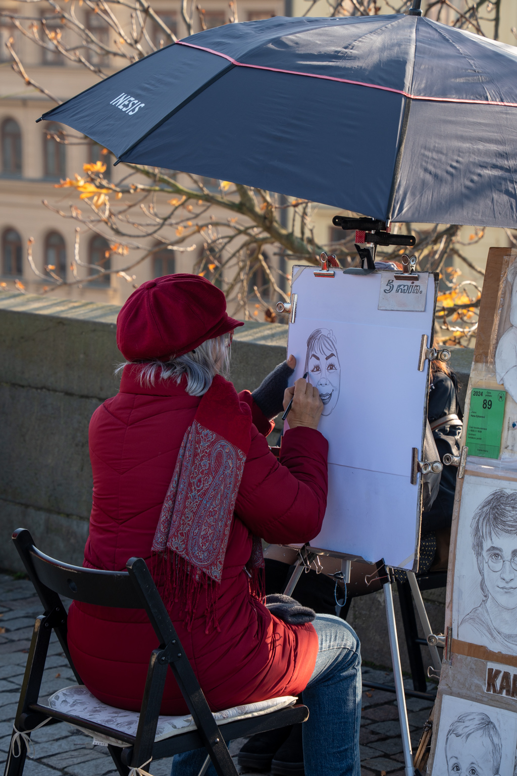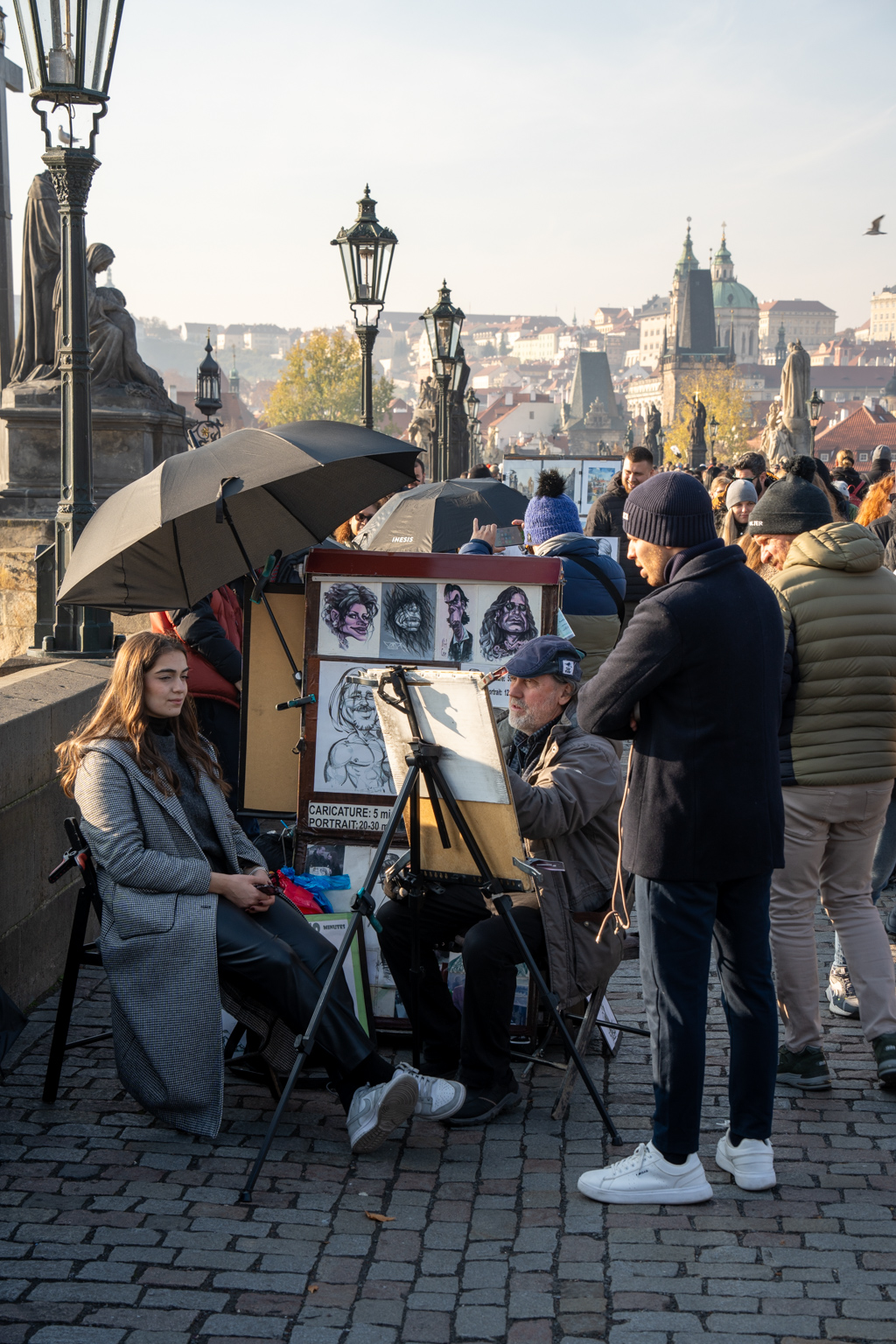 Nach der Stärkung geht es wieder auf die Karlsbrücke, um dem Treiben zuzusehen und zu versuchen Fotos mit wenig Touristen zu machen, was aber nicht immer gelingt.