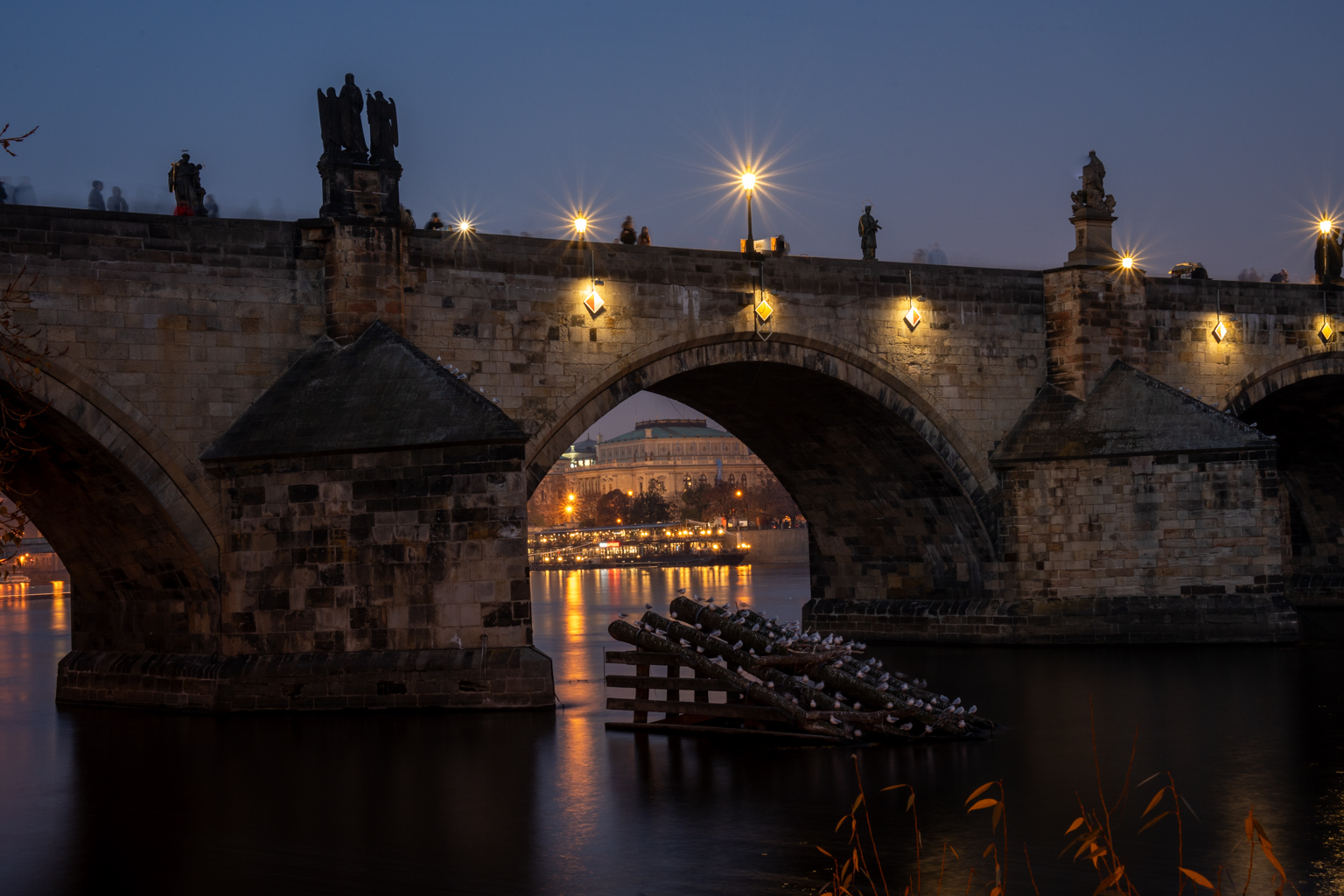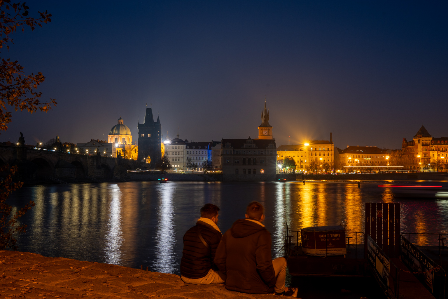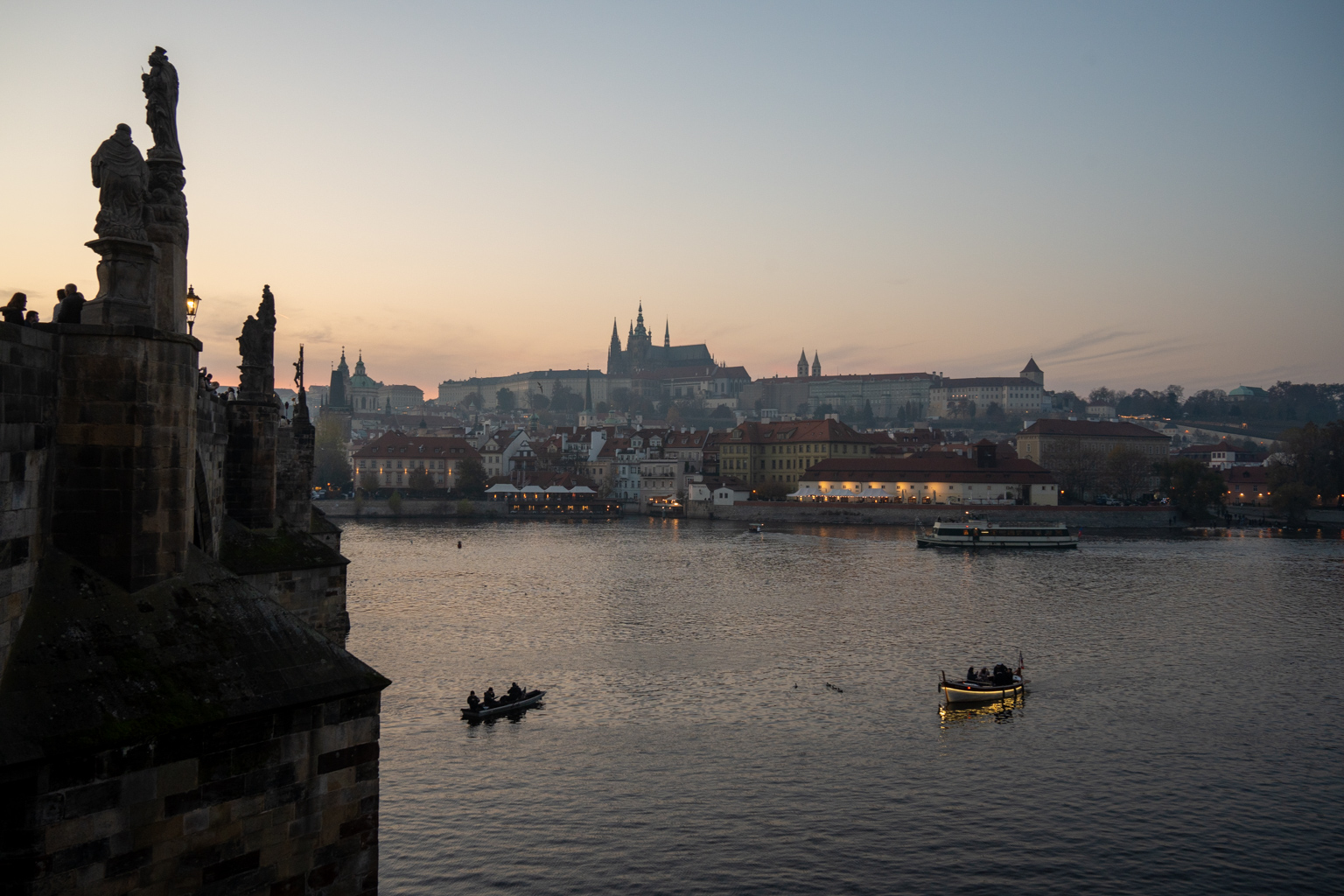 Der Versuch, Karten fürs Clementium zu bekommen, scheitert – dafür müssten wir eine Woche länger in Prag sein, um noch welche zu bekommen. Also machten wir uns nach einem Spaziergang durch die Altstadt, und wieder Richtung Moldau, um die Abendstimmung einzufangen.