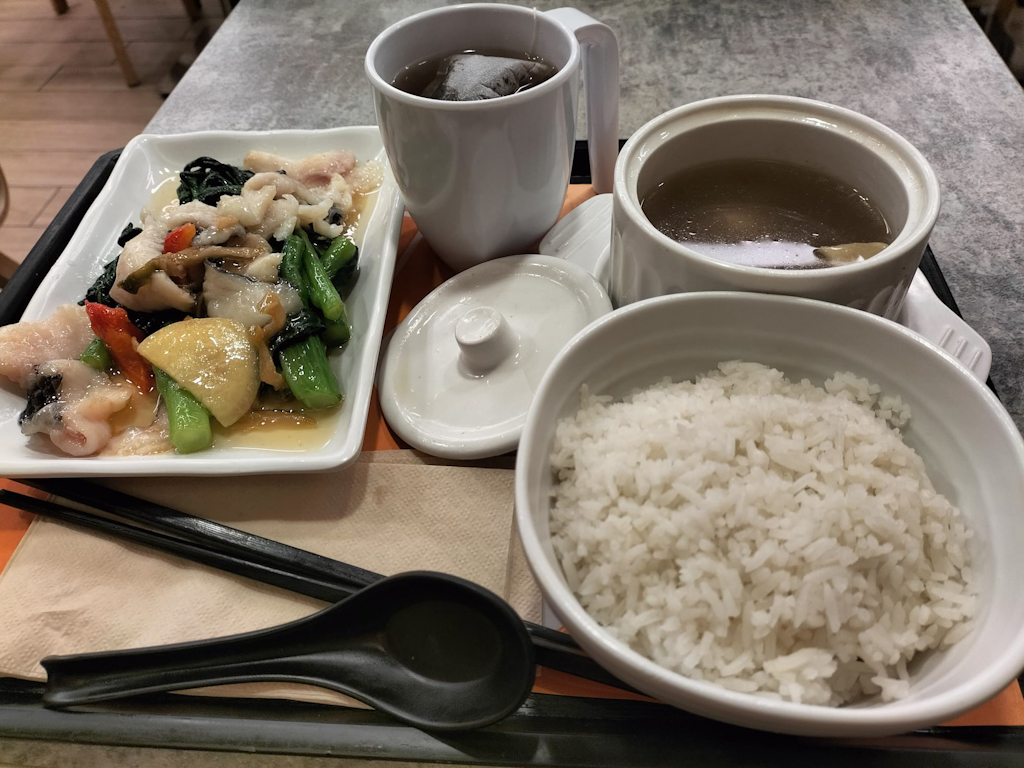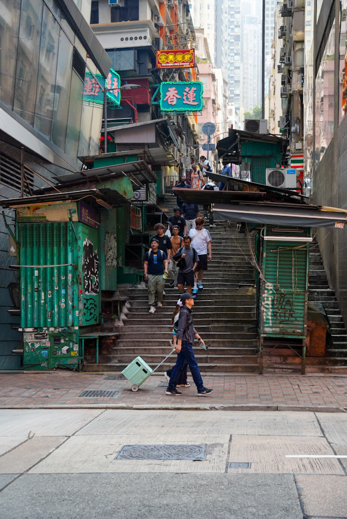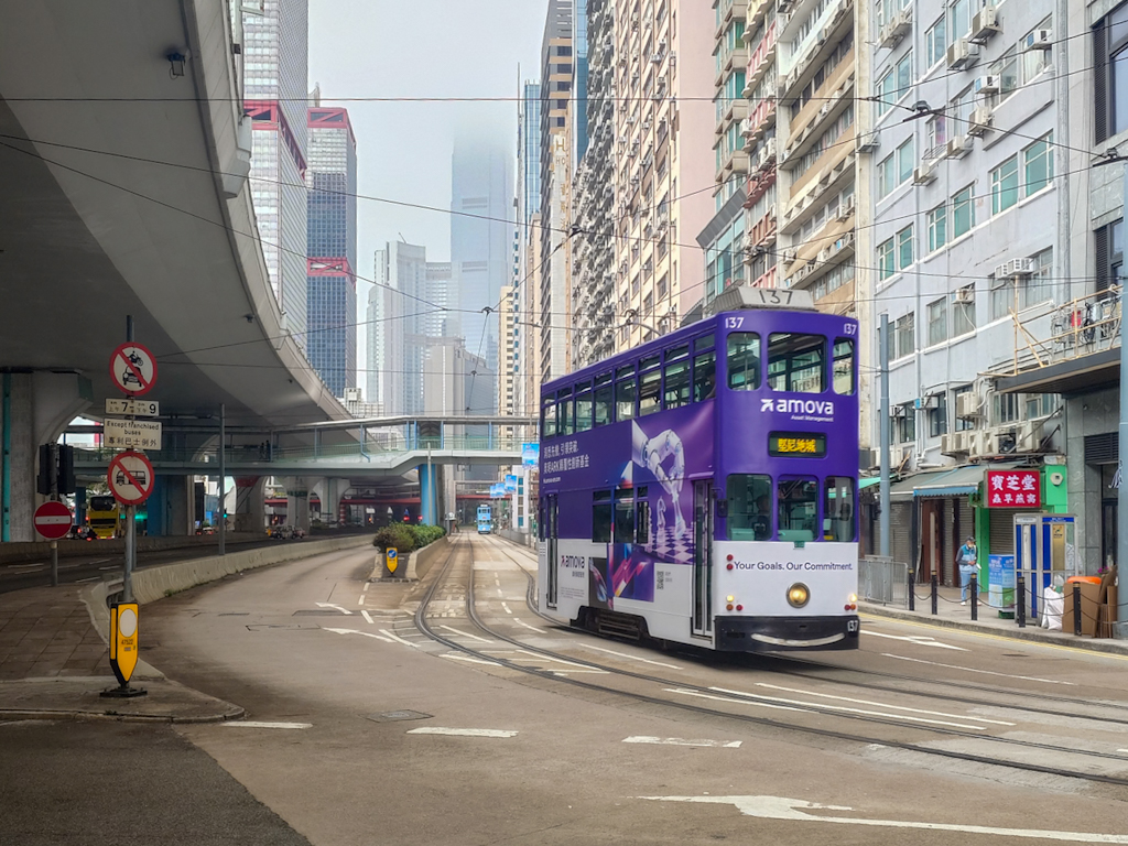 Witzig sind auf jeden Fall die Ding Dings. Wusstest du eigentlich, dass diese doppelstöckigen Straßenbahnen schon seit 1904 durch Hongkong rattern? Sie sind die einzigen ihrer Art weltweit, die ausschließlich mit Doppeldeckern betrieben werden, und schieben sich herrlich entschleunigt durch das moderne Chaos. Unser Frühstück finden wir in der Nähe des Macau Terminals: Es gibt Ramen und frittierten Fisch mit Rührei. Die Atmosphäre ist wuselig, aber das Essen ist ehrlich und gut.