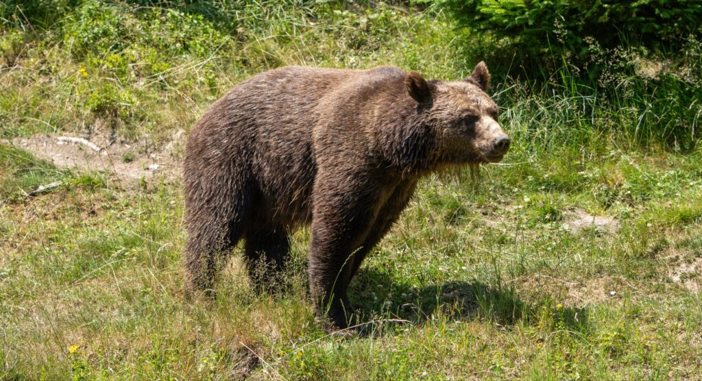 Mit dem Sessellift geht es zum Berg. Leider haben wir eine blöde Zeit erwischt, während die Besucher in der Sonne schwitzen, verkriechen und verstecken sich die Tiere. Luchs und Wildkatze sehen wir nur auf den Fotos. Beim Bärengehege sehen wir dann das erste Mal etwas, 2 Wölfe und ein Bär. Im Steinwildgehege einen Steinbock und einige Geißen und Zicklein. Am Rückweg kommen wir nochmals am Bärengehege vorbei, jetzt spielt ein Bär im Wasser mit Stöcken und Steinen, witzig anzusehen. Das war es aber leider, man sieht zwar einen Polarwolf, Timberwolf, Bison und Yaks, aber diese entweder schlafend oder weit weg.