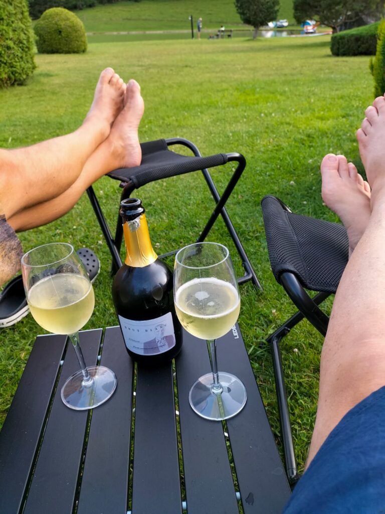 Wie immer schlafen wir herrlich in unserem Eriba. Am Sonntag genießen wir unseren Platz und chillen am Teich. Es ist wirklich lustig mal nur zu lesen, Natur zu genießen und einfach Seele baumeln zu lassen.
