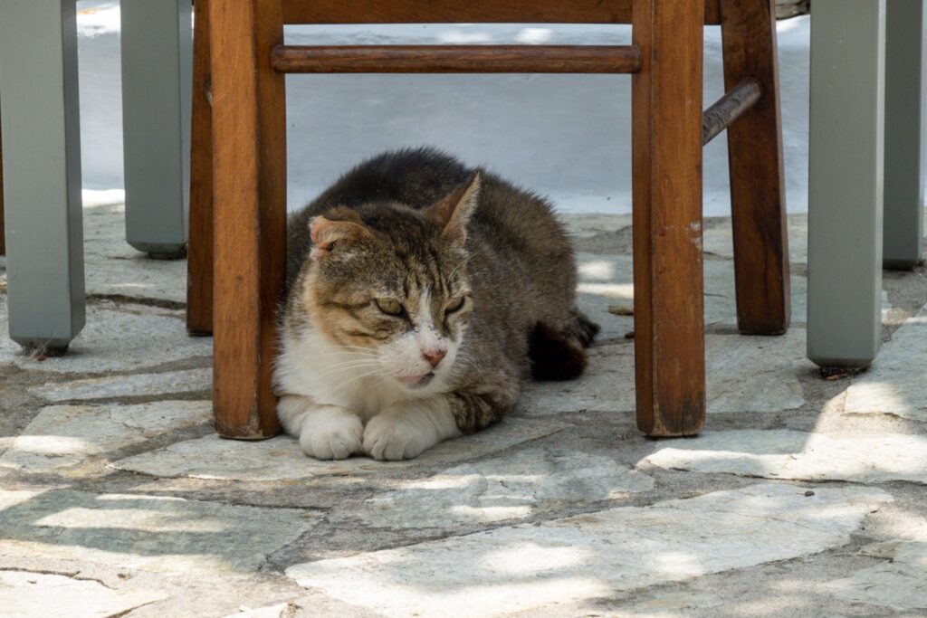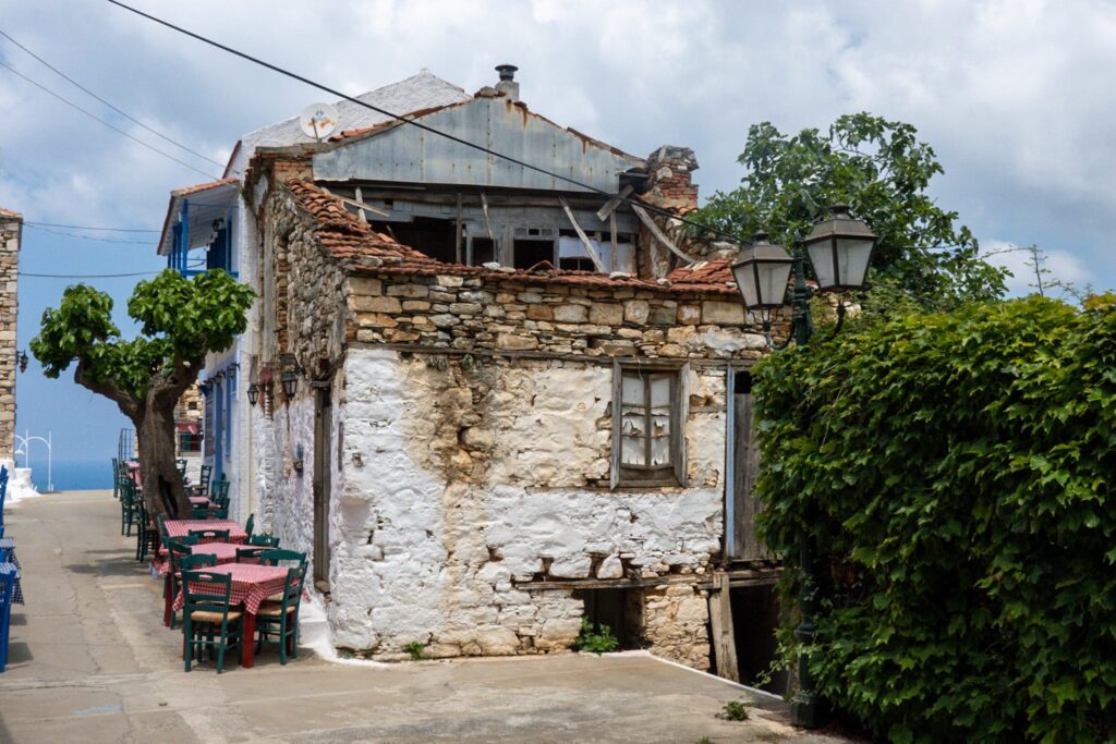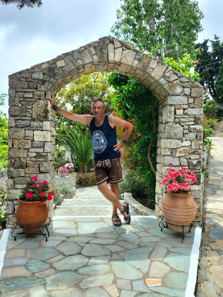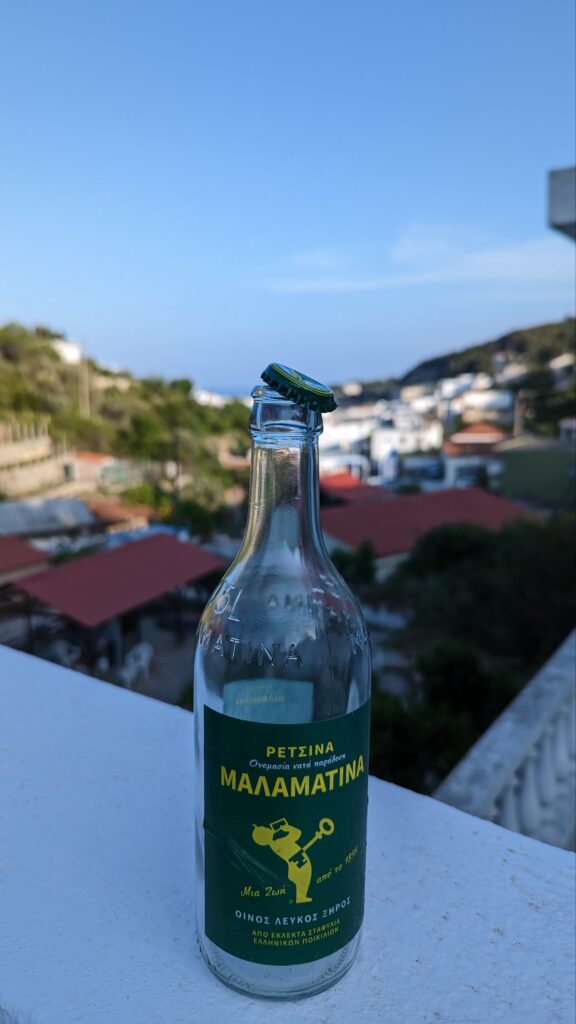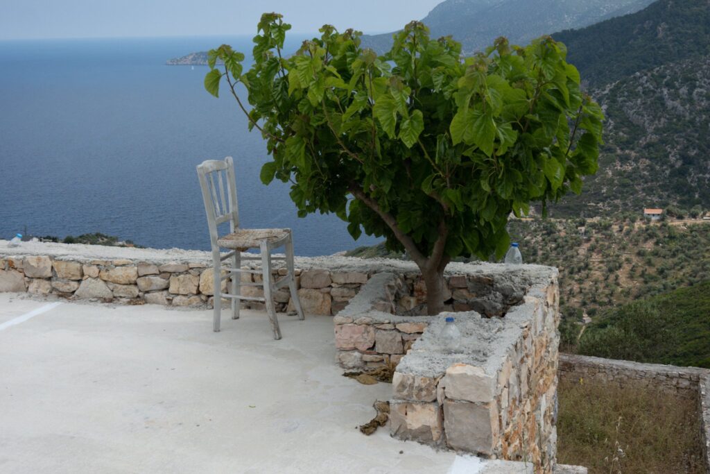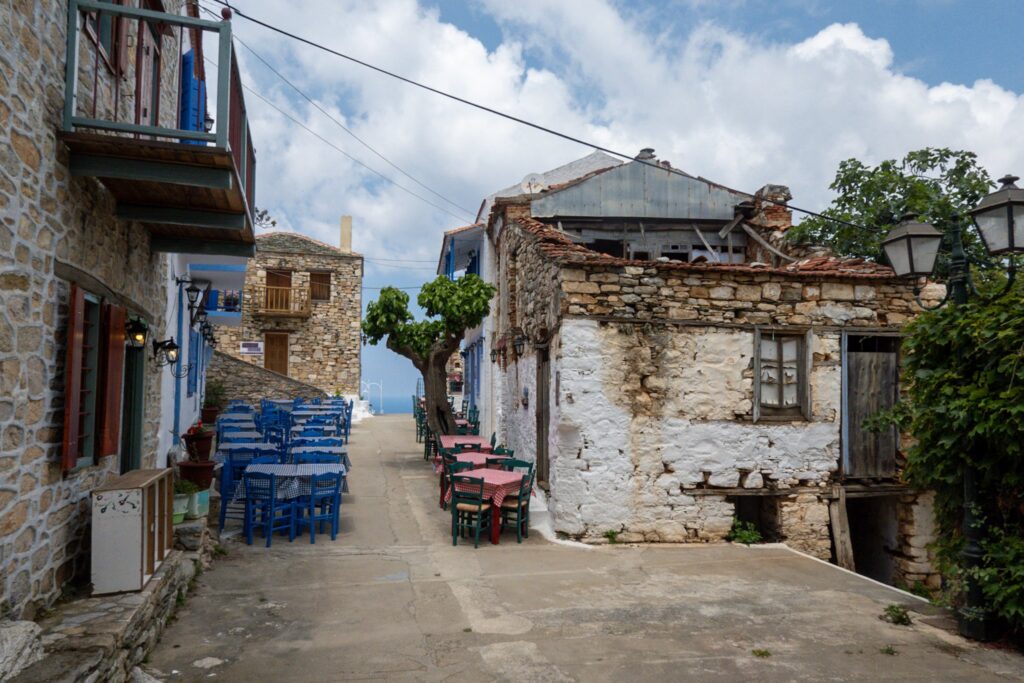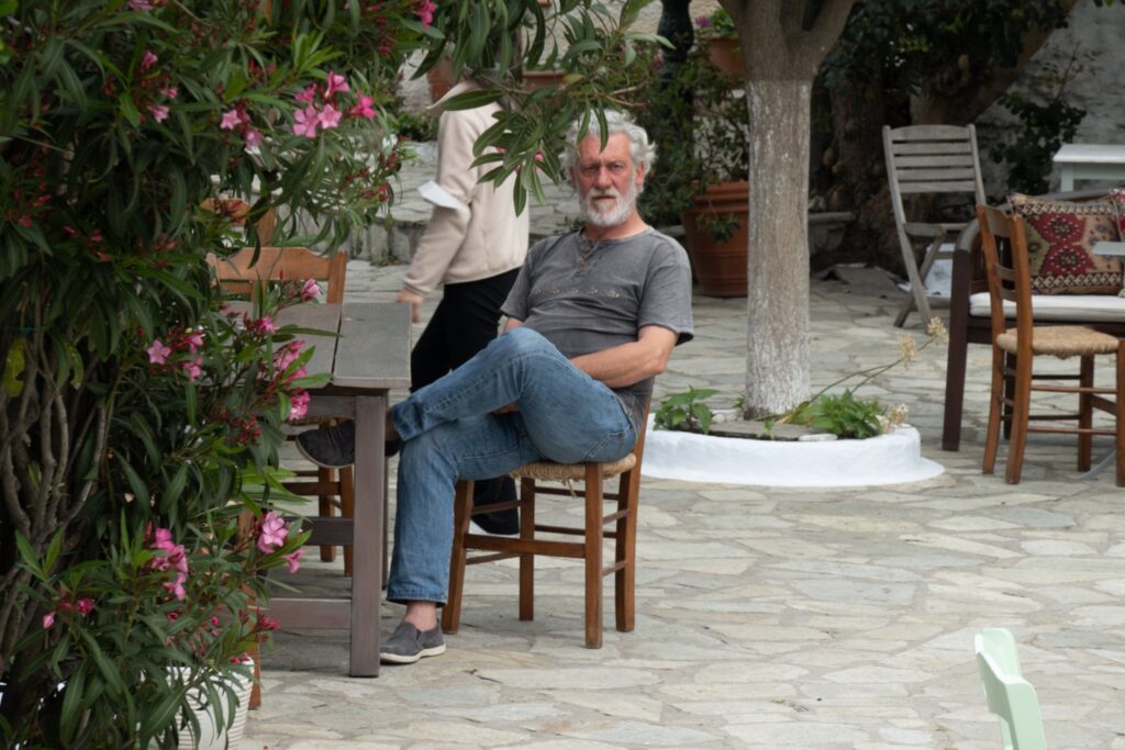 Nach dem gammeligen Alten zu was schönen Alten – zur Chora. Wie gestern erwähnt kann das bräunliche Wasser aus der Thermoskanne im Hotel Spuren von Kaffee enthalten, also genießt wir ein Kaffee am Hauptplatz der Chora. Ein bißchen spazieren, ein bißchen einkaufen, ein bißchen fotografieren, ein bisschen Drohne fliegen. Der Ort ist wirklich nett. Hier treffen wir auch auf Sancho (oder Dimitri, Giorgo ….. keine Ahnung) und seinen Esel. Zwei oder dreimal am Tag werden die Massen mit Bus herauf transportiert, dann wird es hektisch, aber dazwischen ist es angenehm ruhig, wenigstens bei unseren Besuchen.