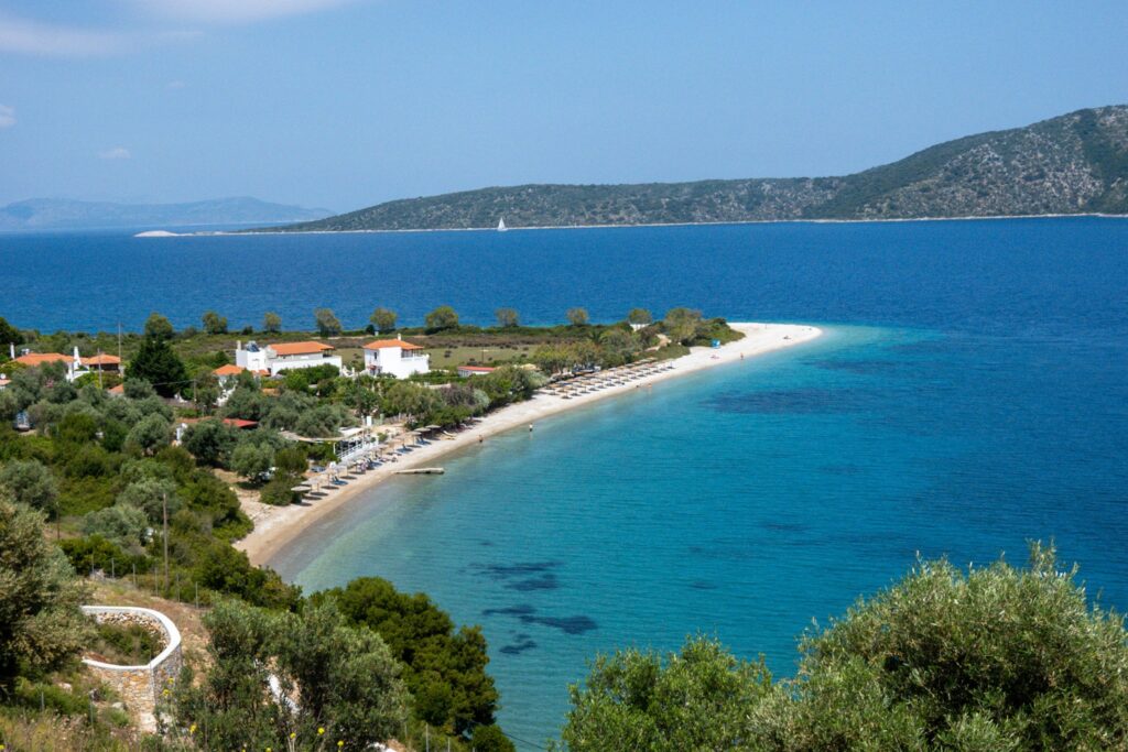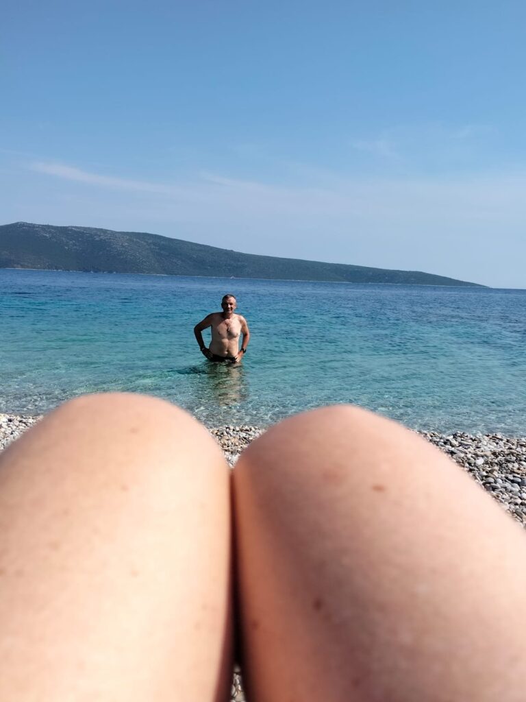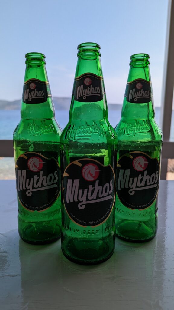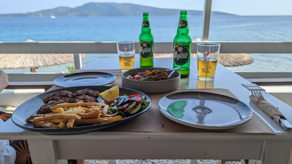 Uns gefällt der Strand bei Agios Dimitrios und auch die kleine Bar/Taverne dort. Diesesmal essen wir auch eine Kleinigkeit dort, wir bekommen einen Choriadiki zum Bier und einen Griespudding als Nachspeise. So nett, wir werden morgen wieder hinfahren. Auch der Strand ist total schön, so ruhig in der Vorsaison.