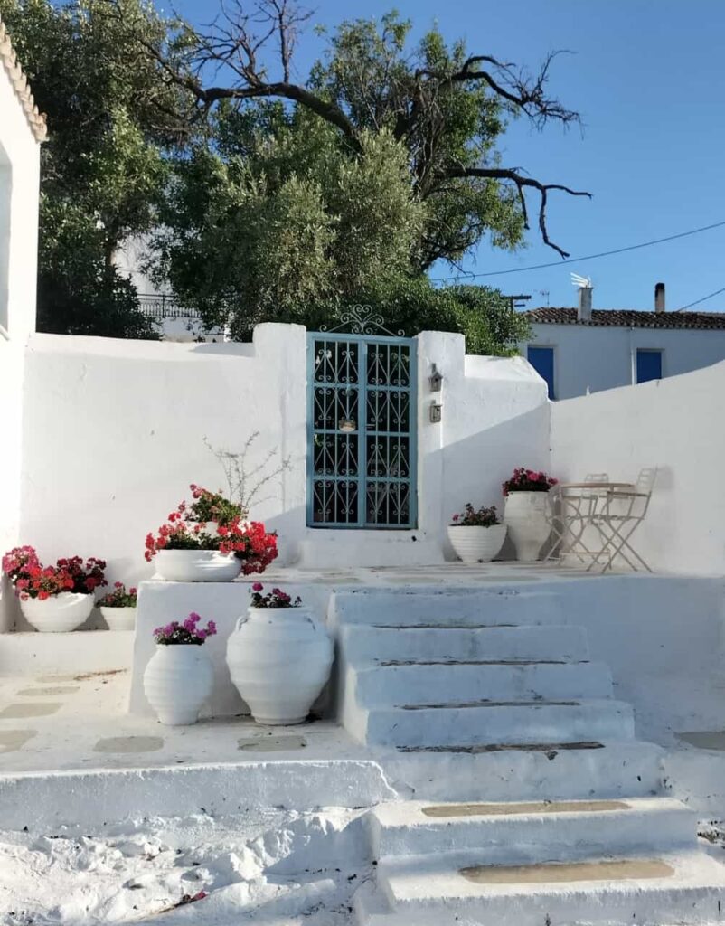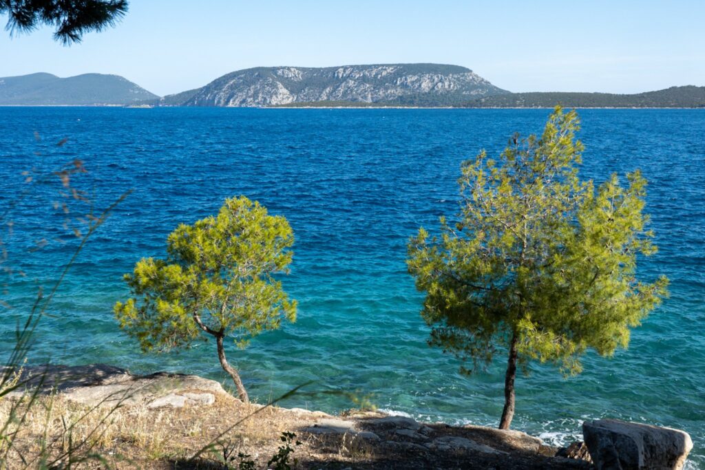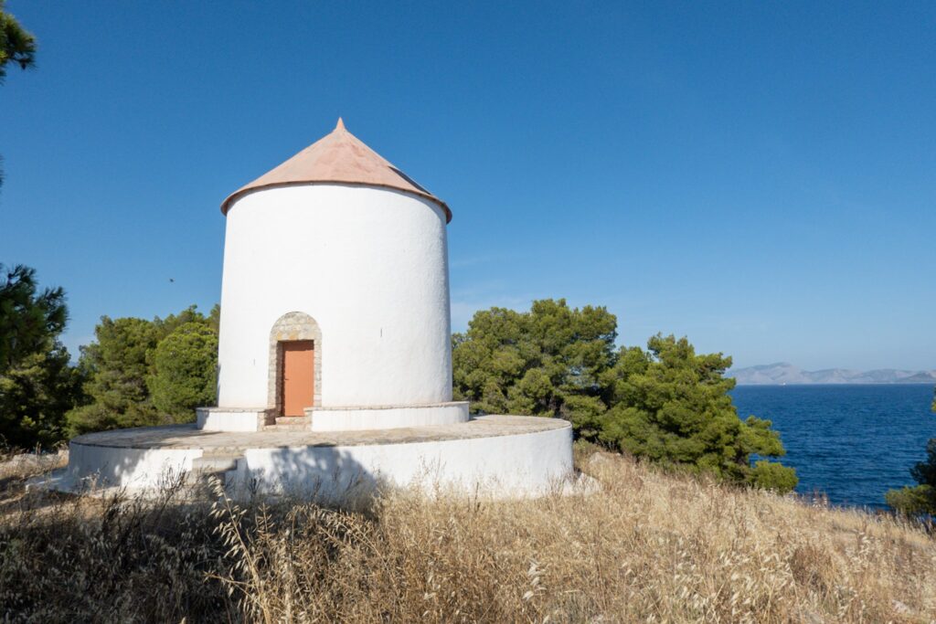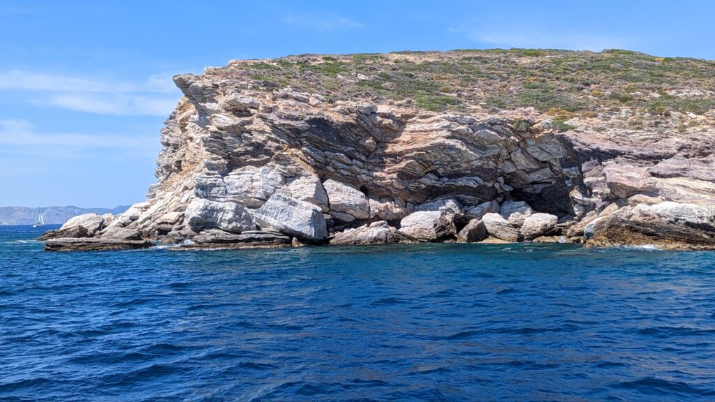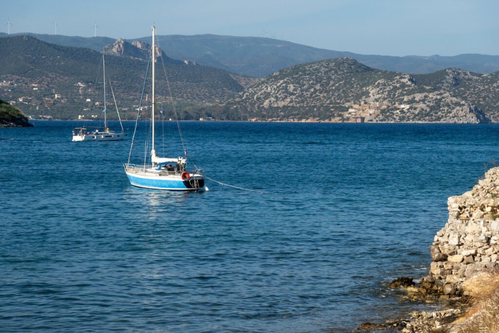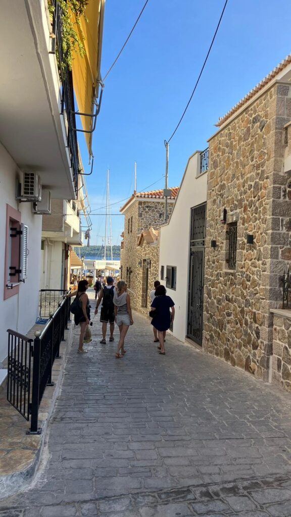Nach der Pause segeln wir weiter Richtung Ermioni, das Anlegen ist trotz seitlichen Wind recht stressfrei. Brigitte am Anker, Ingrid als Papagei (Vermittler zwischen Anker und Steuermann), Horst am Steuer, Alois und ich laufen mit den Leinen. Es gibt einen Spazierweg rund um die kleine Halbinsel, wir spazieren und genießen die schöne Natur.