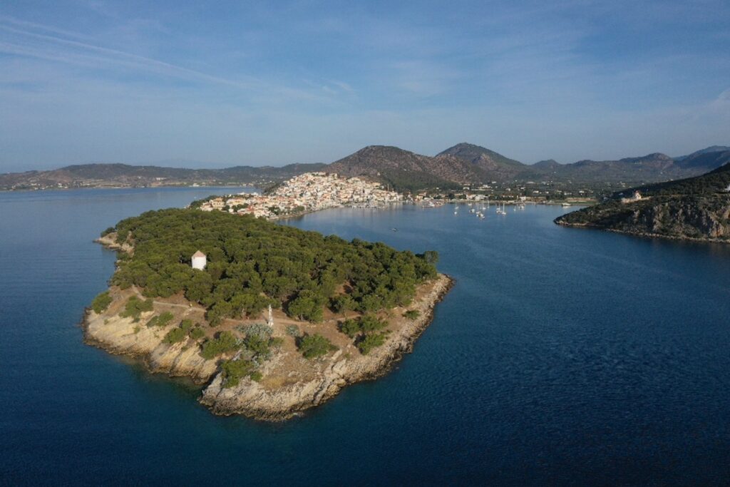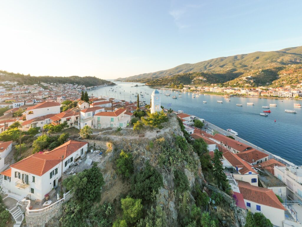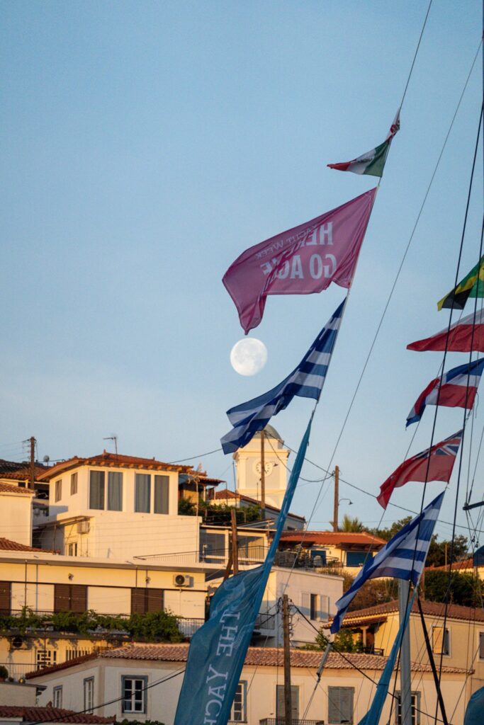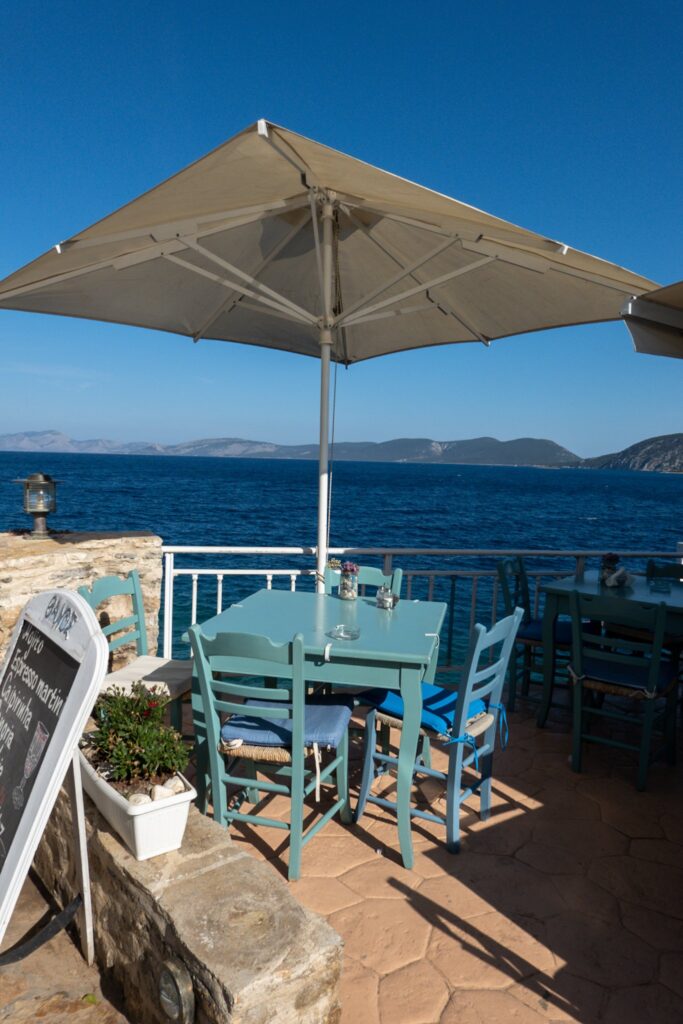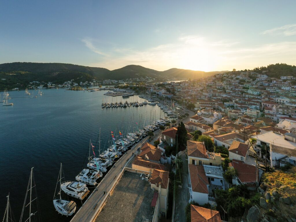 Die Nacht in Poros war extrem ruhig. Ein kleiner Spaziergang zum Uhrturm am Morgen, ich fliege eine Runde mit der Drohne, am Morgen störe ich keinen. Am Hafen treffe ich Ingrid und Alois und wir gehen einen Kaffee trinken, und schon wieder wird der Greek Coffee nur in einer Tasse serviert, nicht in der Kanne. Auch der Rest der Crew gesellt sich zu uns.