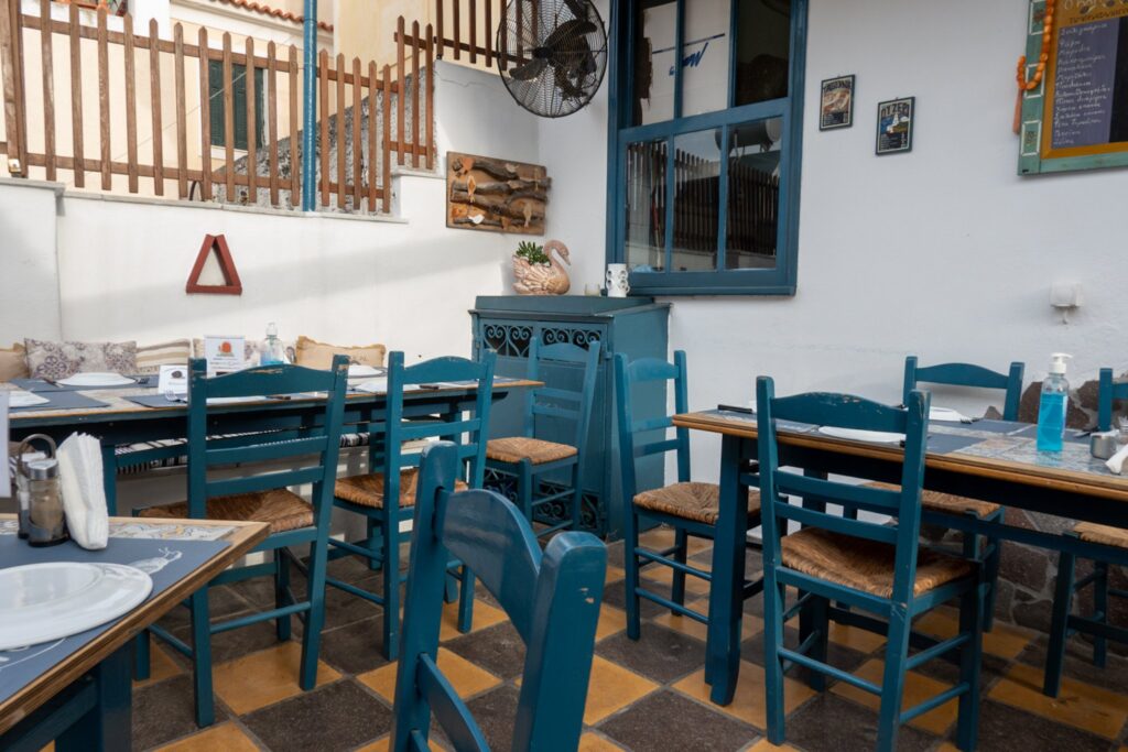 Wir spazieren durch Poros, das viele schöne Gasserl und Häuser hat. Bevor wir in der Taverna Karavolos unser Abendessen einnehmen. Diese sehr nette Taverne,liegt etwas abseits vom Hafen. Sehr gut besucht. Die Wirtin ist alleine im Service und erledigt ihren Job mit einer Freundlichkeit und Ruhe. Essen war ausgezeichnet und in meinem Augen, eines der besten auf unserer Rundreise. Sehr urig eingerichtet.
