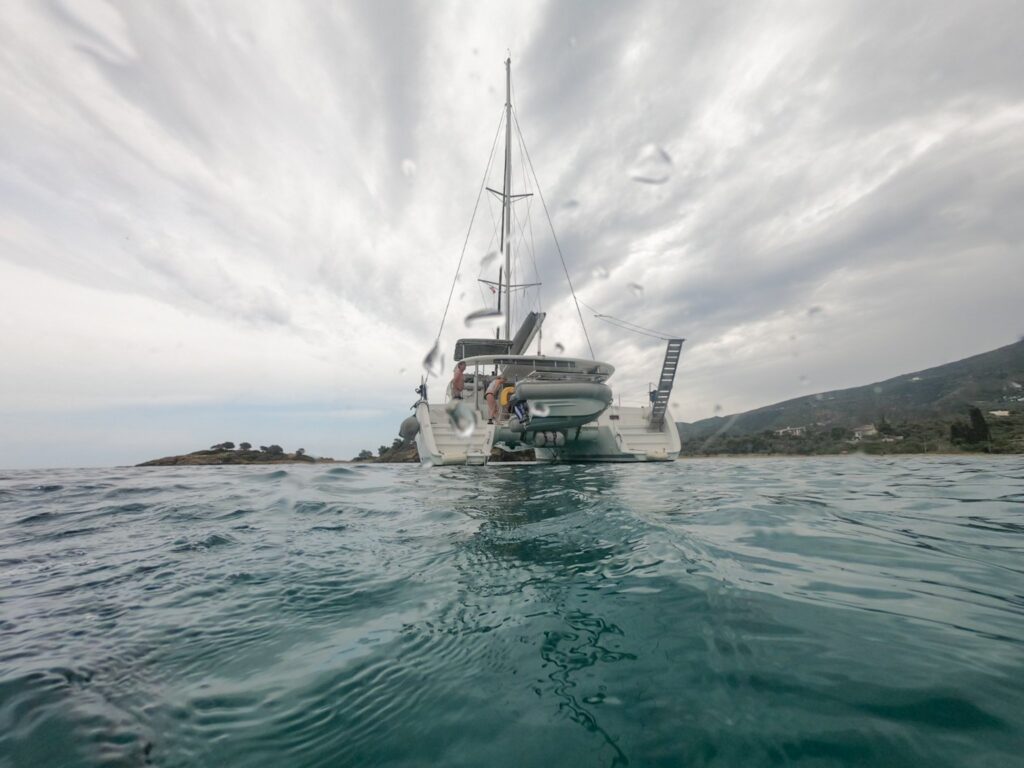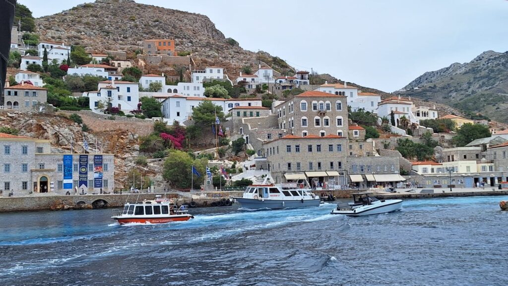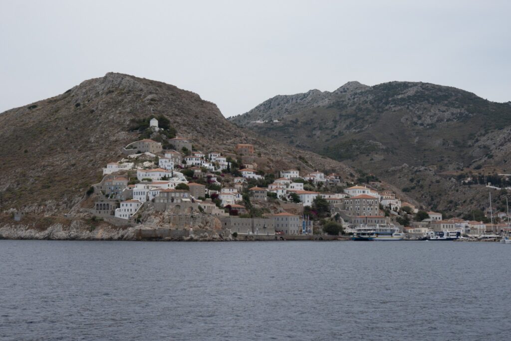 Wir lichten den Anker in Eriomi und fahren zu einer nahegelegenen Ankerbucht. Hier frühstücken wir, schwimmen wir und genießen das Meer. Unser heutiges Ziel ist Hydra, eine kleine Insel. Berühmt ist die Insel, dafür das sie autofrei ist. Bis auf ein paar Behörden Fahrzeuge, gibt es keine Autos auf Hydra. Alle Transporte werden mit Eseln erledigt, egal ob Lebensmittel, Gepäck oder Personen.