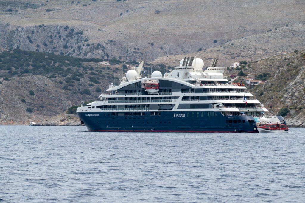 Wir planen Hydra gegen Mittag anzulaufen, damit wir einen Platz bekommen. Der Plan geht nicht auf. Es liegt ein Kreuzfahrtschiff vor der Insel-Hauptstadt, im Hafen liegen die Boote in 2er und 3er Packerl. Gut wir sind ja flexibel, also in eine Bucht westlich von Hydra. Plan: ankern mit Landleine und dann mit dem Taxi Richtung Stadt Hydra. Aber auch die Bucht ist voll und der einzige Platz wird uns vor der Nase weggeschnappt. Okay jetzt hat die Crew die Nase voll, der Skipper murrt und will warten, aber 2x Kielholen überzeugt ihn das wir weitersegeln nach Poros.