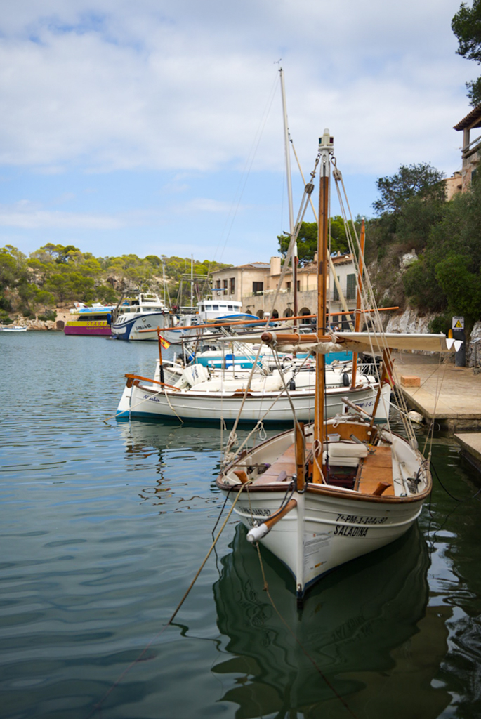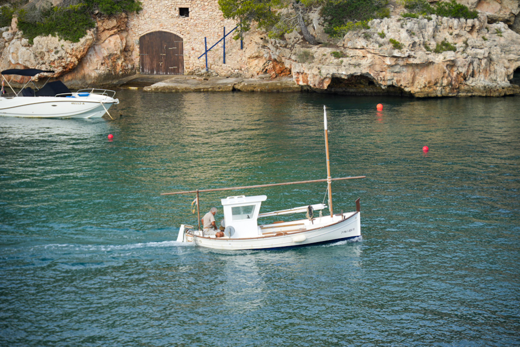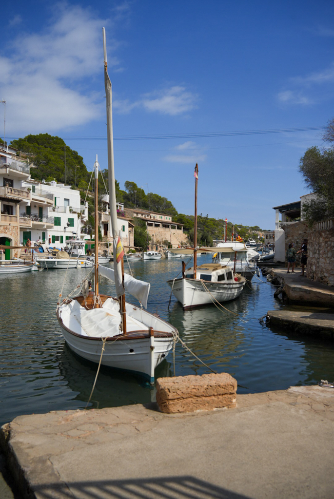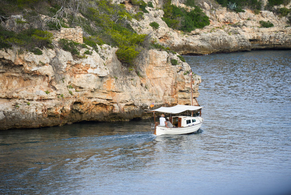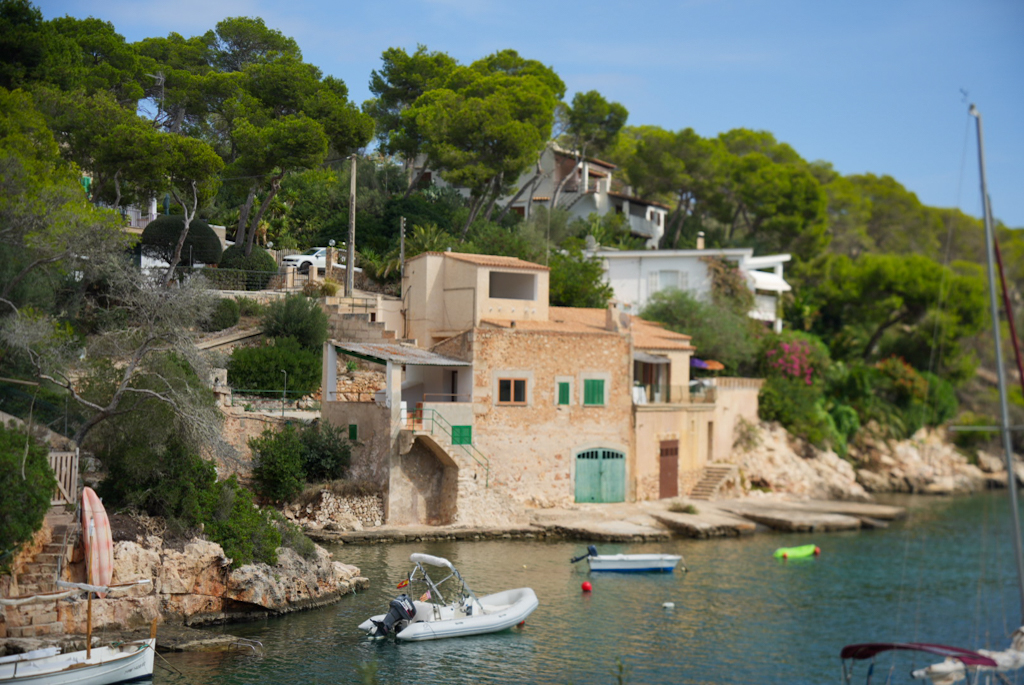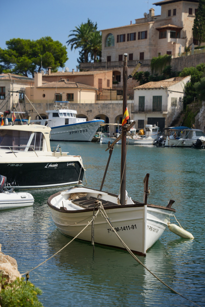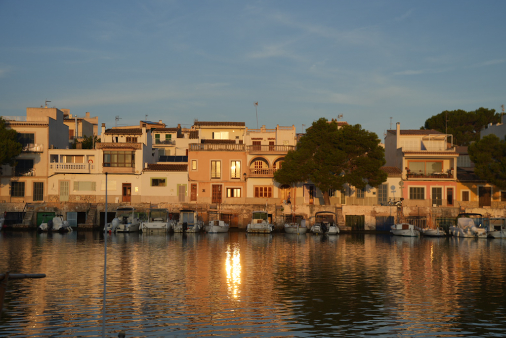 Wir wachen wieder relativ früh auf, obwohl es hier sehr angenehm und ruhig war. Das Frühstück gibt es erst ab 9:00 Uhr, also fahren wir nach Portocolom. Der Hafen sieht nicht wie die meisten modernen Marinas aus; er ist ein Naturhafen, geformt wie eine Flasche mit einem langen, schmalen Eingang. In der Bucht schaukeln die Boote friedlich auf dem Wasser, viele davon sind noch die traditionellen, kleinen Fischerboote, die Llaüts. Die bunten, alten Häuser und die Bootshäuser, die sich am Hafenrand aneinanderreihen, bilden ein echtes Postkartenmotiv