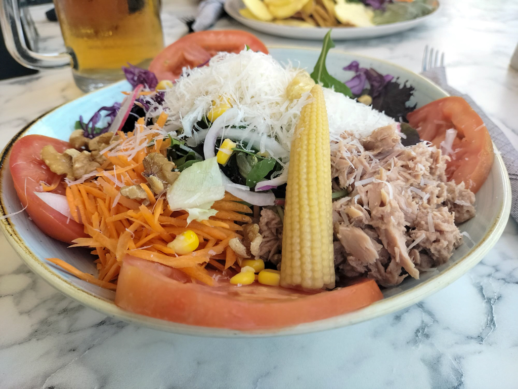 Wir essen am Hafen im Restaurant Bon Bar. Das Essen ist gut, aber nichts Besonderes. Da wir bisher selten gut gegessen haben, planen wir für morgen ein Essen in der Finca – mal sehen, ob der Plan hält.