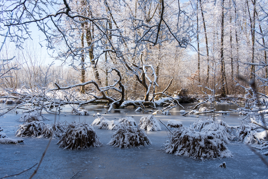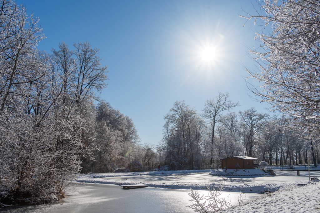 Wie man sieht, gibt es auch in der unmittelbaren Nachbarschaft einiges zu erkunden und zu entdecken. Von unseren Hauskatzen, die im Schnee spielen, bis zu scheuen Bisamratten – von Schneemännern bis zu Hühnern mit Sonnenschirmen. Auch die alten Bäume und zugefrorenen Teiche geben ein schönes Bild.